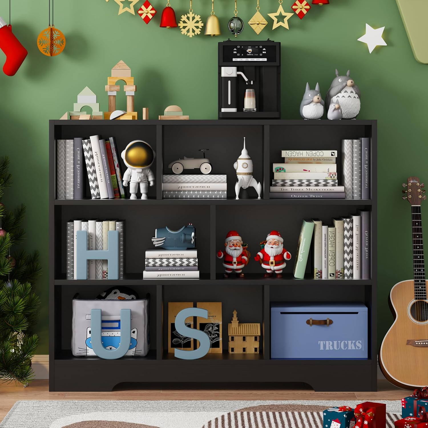 Book Shelf Set of 2, 8 Cubes Storage Organizer, 3-Tier Open Shelf Wooden Bookcase, Freestanding Balck Bookshelf Cube Shelf for Bedroom, Living Room, Home Office