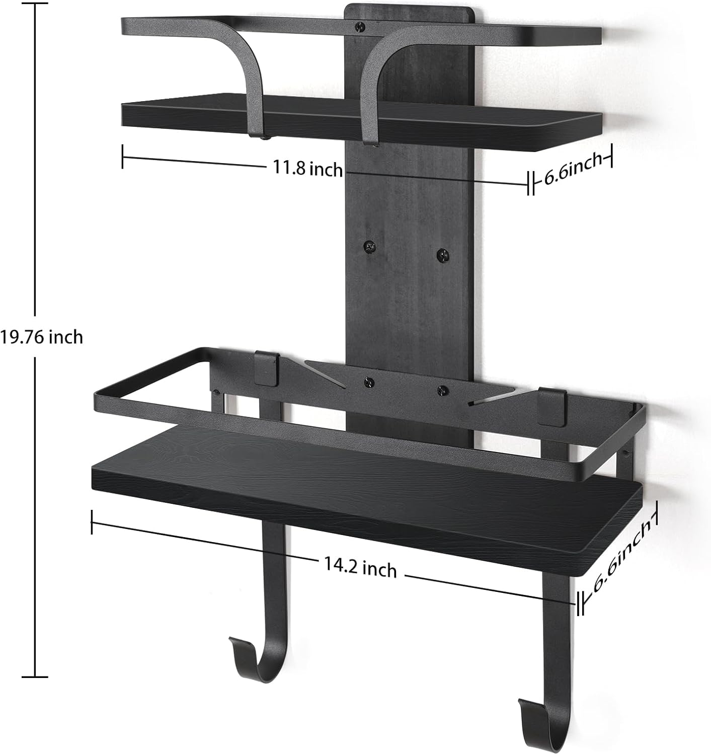 VINAEMO Ironing Board Hanger Wall Mount, 2-Layer Iron and Ironing Board Holder, Laundry Room Shelves Solid Wood with Removable Hooks Home Organization and Storage