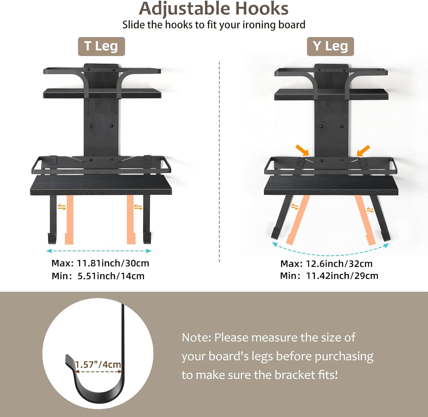 - 【2-Layer Larger Storage】Upgraded 2-layer solid wood design, this ironing board hanger for wall offers twice as much storage space as any other products. It is convenient for you to keep your irons, ironing board and ironing accessories in one location.