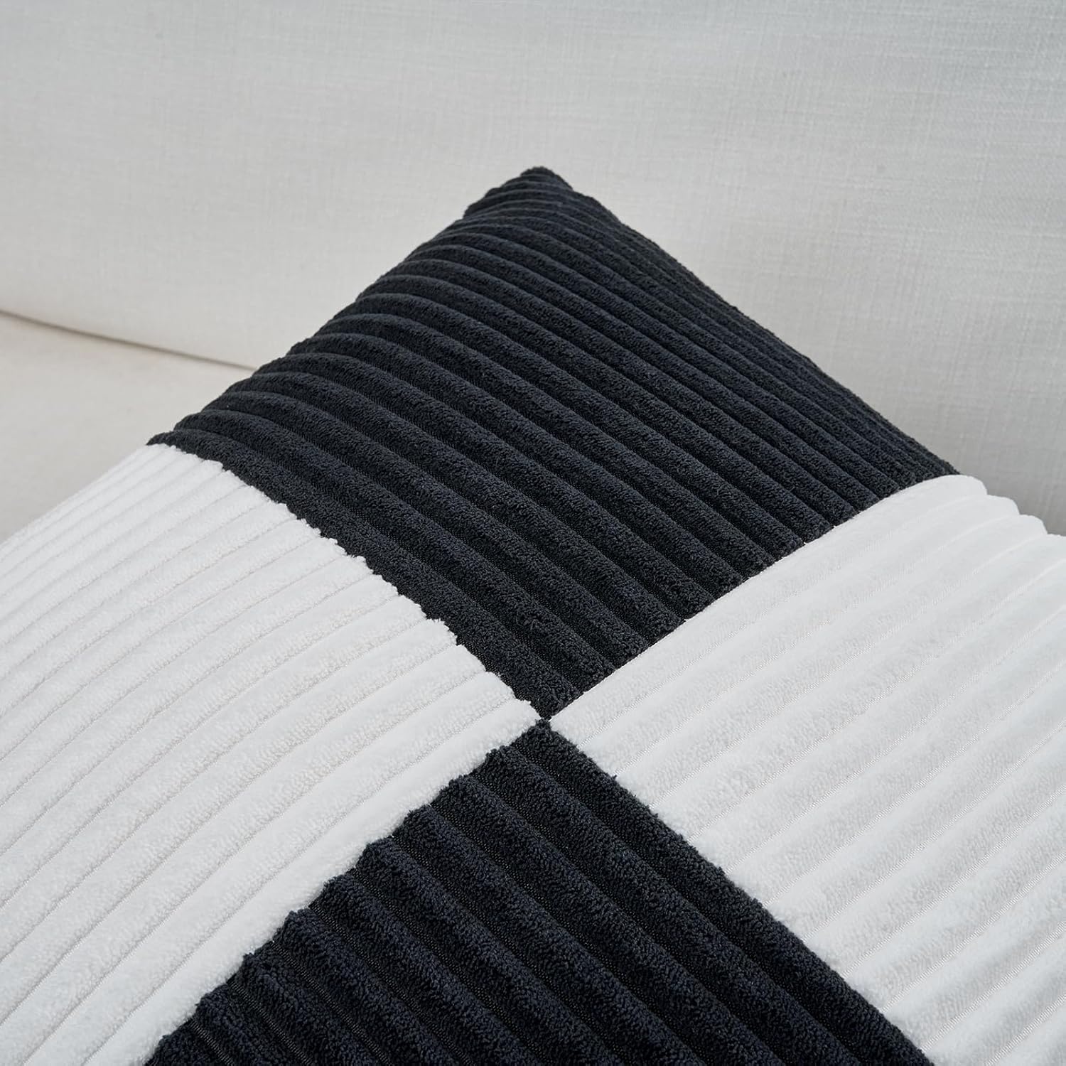 Fancy Homi Set of 2 Black White Lumbar Decorative Throw Pillow Covers 12x20 Inch for Living Room Bedroom Couch Bed Sofa, Soft Striped Corduroy Modern Rectangle Accent Cushion Case 30x50 cm