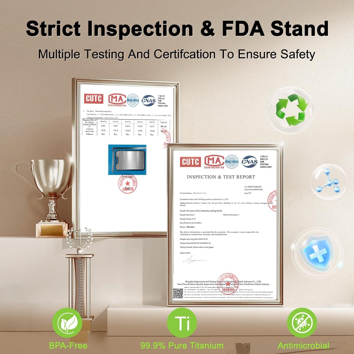 - 【Uncompromising Quality & Durability】 Engineered to outperform traditional cutting boards, our premium titanium surface resists knife marks, repels food residue, and never absorbs odors – ensuring lasting hygiene. The solid titanium construction features a thickened design that withstands rigorous daily use, from heavy chopping to precise slicing, without scratching or retaining food juices. This combination of innovative materials and robust engineering creates the ultimate long-term kitchen investment