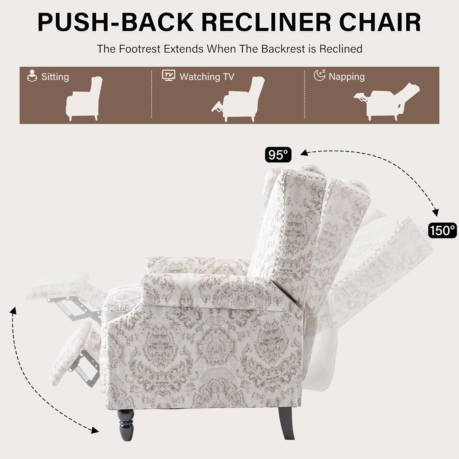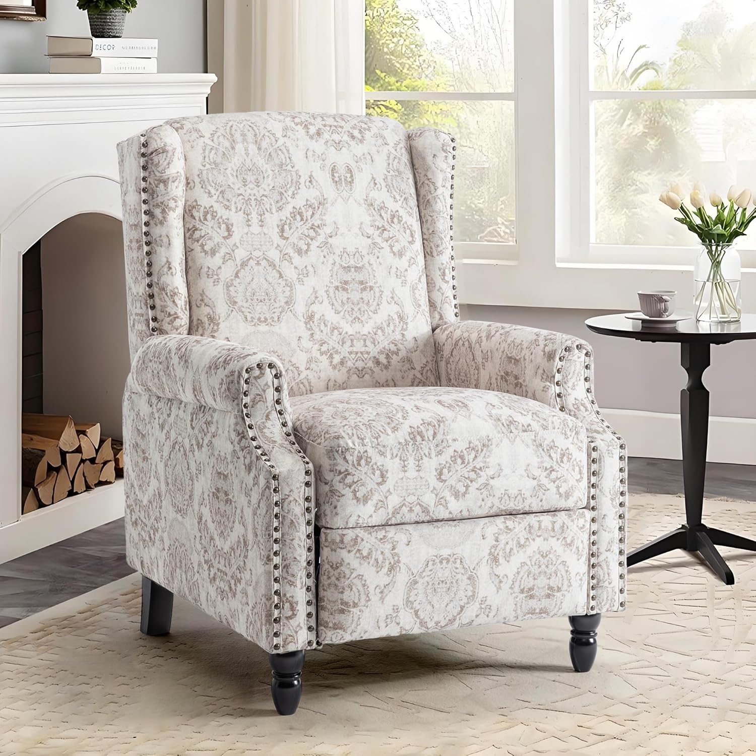 UIXE Recliner Chairs Set of 2, Fabric Upholstered Armchair Pushback Accent Chair for Living Room, Floral Rivet Trim Club Chair Home Theater Single Sofa Bedroom Side Reading Seat - Beige Pattern