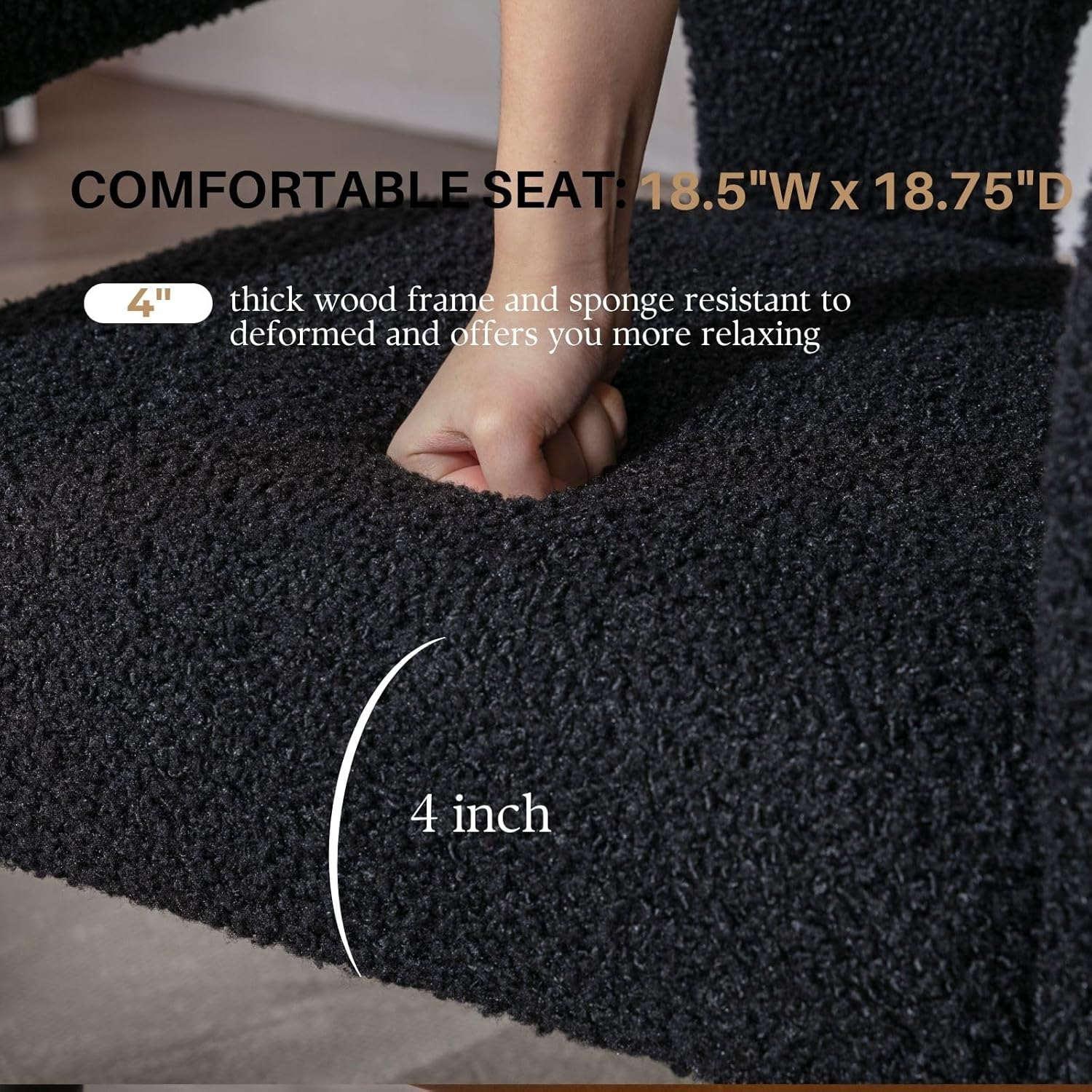 - FLUFFY BOUCLE COVERED: This dining chair features a soft, fuzzy faux fur upholstery that fully covers the seat cushion, offering a luxurious and cozy feel with every sit. The plush material adds both comfort and style, making it an inviting addition to any dining or living space