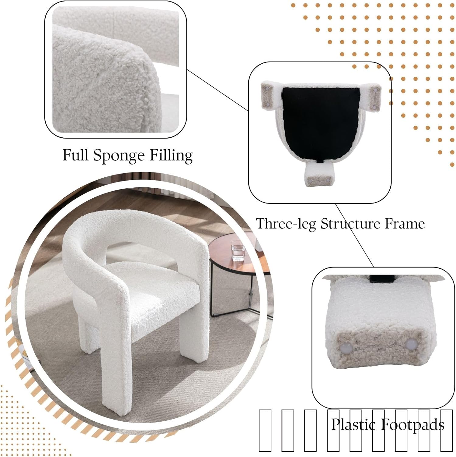White Boucle Dining Chairs Set of 4, Modern Barrel Dining Room Chairs Upholstered Faux Fur Accent Chair with Arms and Round Back for Living Room Kitchen Armchair No Assembly Needed