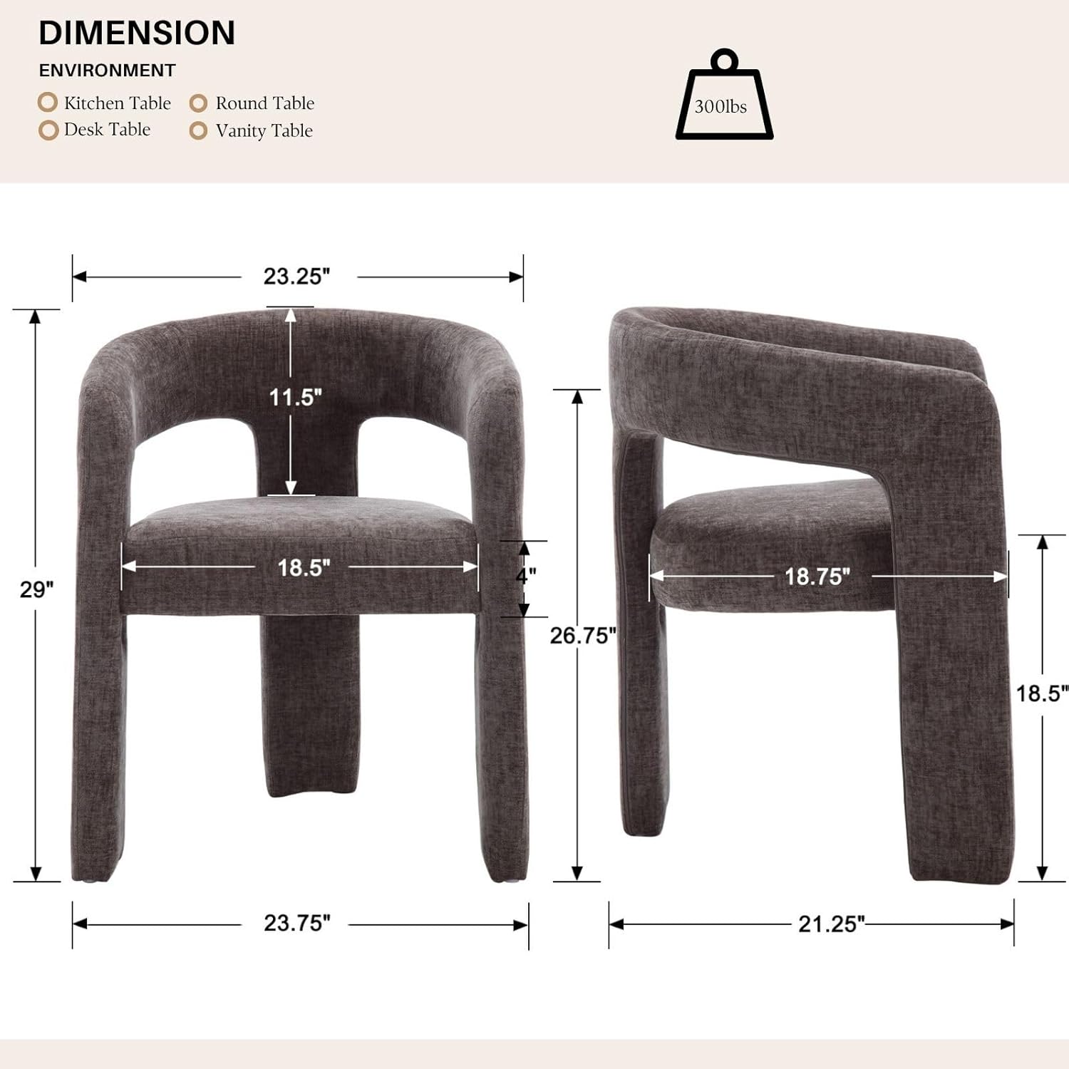 - No Assembly Needed: This chair features a fully fabric covered solid wood leg design with a stable three-leg structure that supports up to 300 pounds without requiring assembly. Equipped with six non-slip foot pads, it protects your floors from scratches while ensuring steady, wobble-free performance in any setting