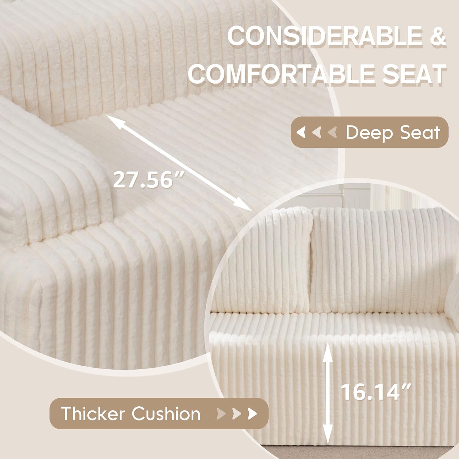 - Comfortable Sectional Couch: The boneless couch is made of breathable fabric and high-resilience memory foam with removable back cushion and neck pillow, providing you with a super comfortable experience. The anti slip design at the bottom ensures the stability of the sofa. The comfy cloud sofa cover is machine washable and can be cleaned when dirty.