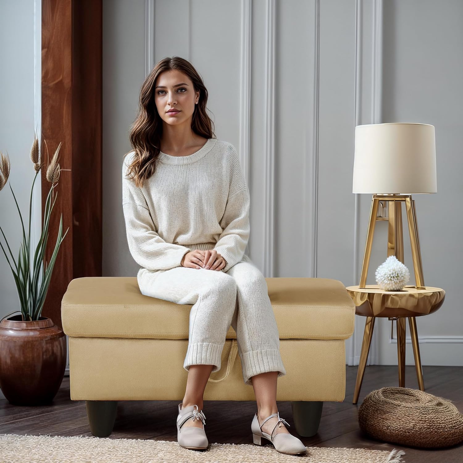 - BENCH OTTOMAN: This adaptable storage ottoman functions as a comfortable bench, perfect for entryways, living rooms, and bedrooms. Blending style with practicality, it offers both seating and storage in one stylish piece. Sit down and enjoy the ideal mix of comfort and convenience this bench ottoman provides.