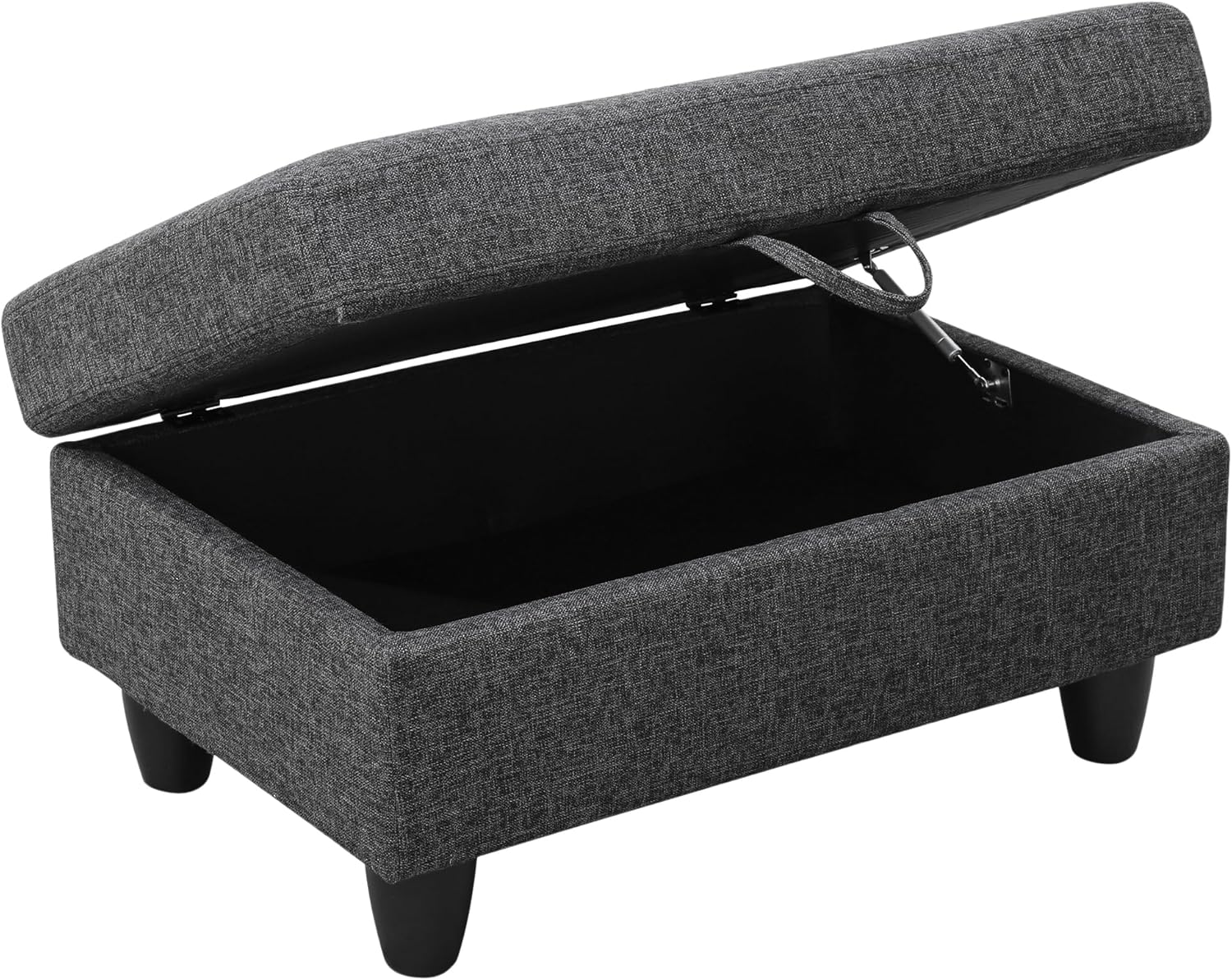 - AMPLE STORAGE: This ottoman offers generous storage capacity for items like pillows, blankets, shoes, seasonal decor, books, toys, and more. Designed with convenient hinges, the lid stays open smoothly and closes gently with a soft-close mechanism. Ideal for organizing your living space.