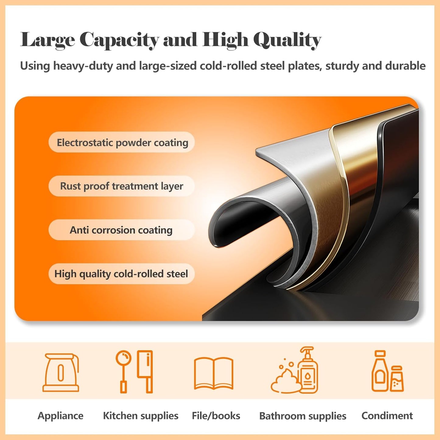 - 『♕High-quality Material』The kitchen pantry storage cabinet is made of large-sized thickened cold-rolled steel plates, each shelf can withstand a weight of 180 LBS, and the reinforced structure makes the steel pantry more sturdy and durable. The freestanding 6 tier pantry adopts textured electrostatic powder spraying technology, which is scratch resistant, wear-resistant, and easy to clean, ensures food storage