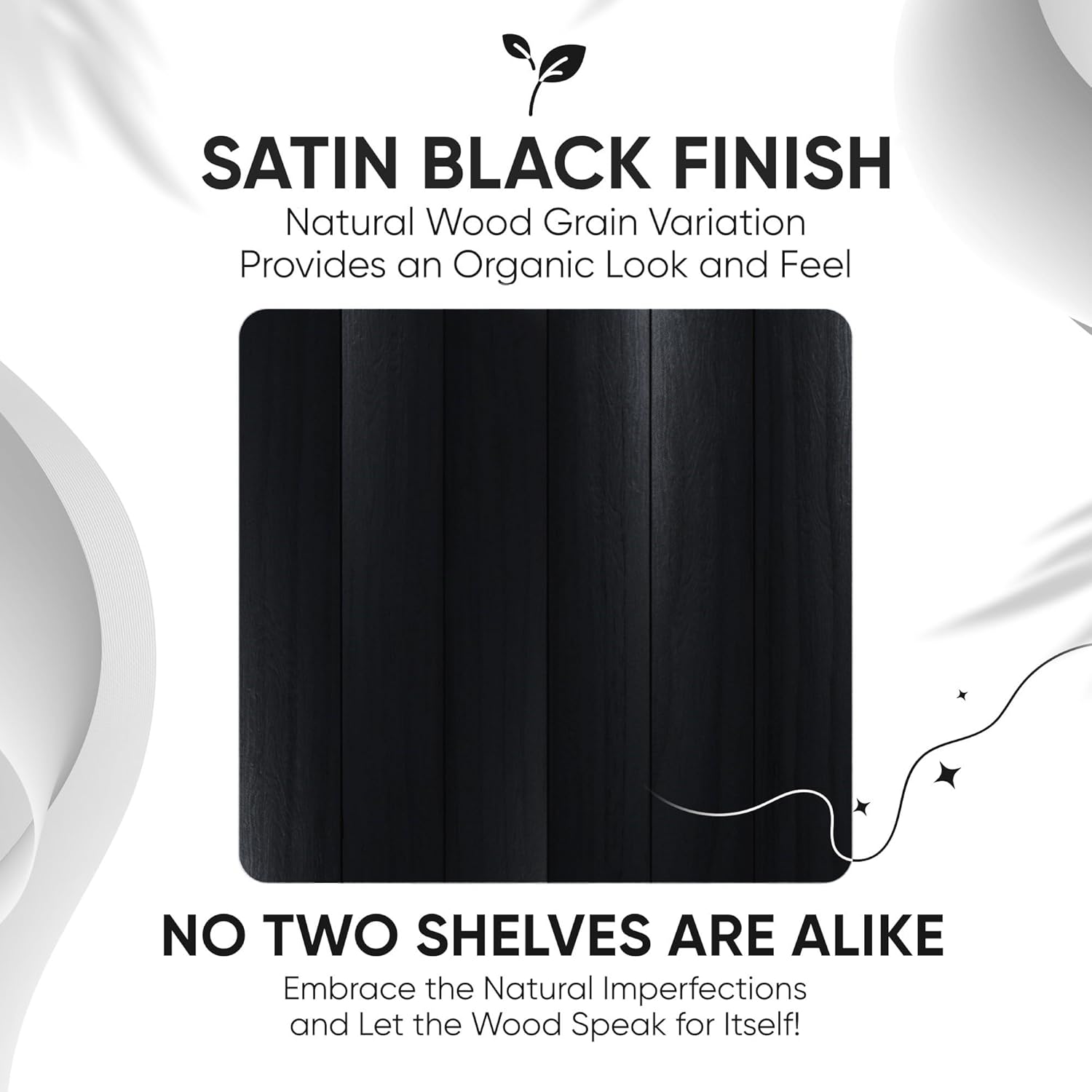 Homeforia Floating Shelf Black 12 inch, High End Solid Real Wood Small 12inch Floating Shelves for Wall Mounted, Black Wooden 12 in Floating Shelves, Heavy Duty Bracket, 12 X 6.5 X 1.75 inch, Set of 3
