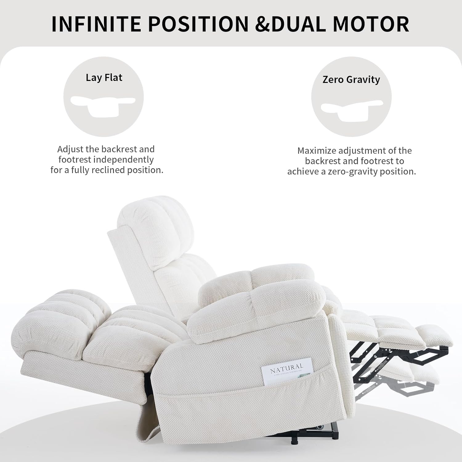 - Dual-Motor Lift Chair for Elderly:Dual-motor structure, enabling the backrest and footrest to be adjusted independently in position.The power lift recliner adjusts to any angle between 105°-170° with an easy-to-use remote control. Its counter-balanced lift mechanism gently lifts the chair to help seniors stand without straining their knees or back.