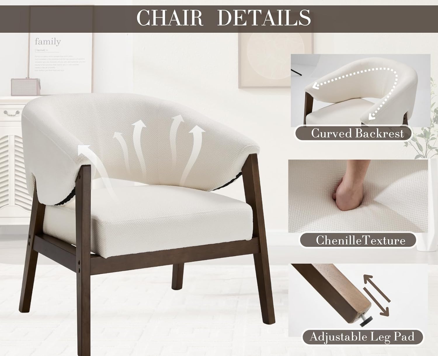 - [Soft Touch, Subtle Luxury-Cozy Meets Classy]-Dressed in plush chenille white, this accent chair brings a warm, inviting vibe to your reading nook or living room. The smooth, velvety texture is soft to the touch, adding a subtle elegance while staying easy to maintain.