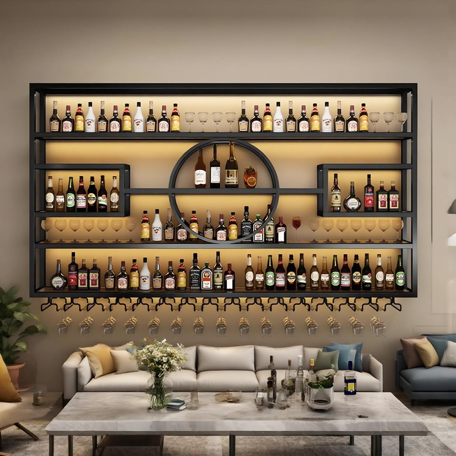 - 【Large Storage Space】The wall-mounted wine rack can be used as a bar decoration or a large wine storage cabinet. This height can store most wines or spirits when we sit at a small bar to relax all day or have a party. The wine glass rack is sturdy enough to hold more wine glasses. The wine rack doubles as a large storage rack, making the space look neat and organized