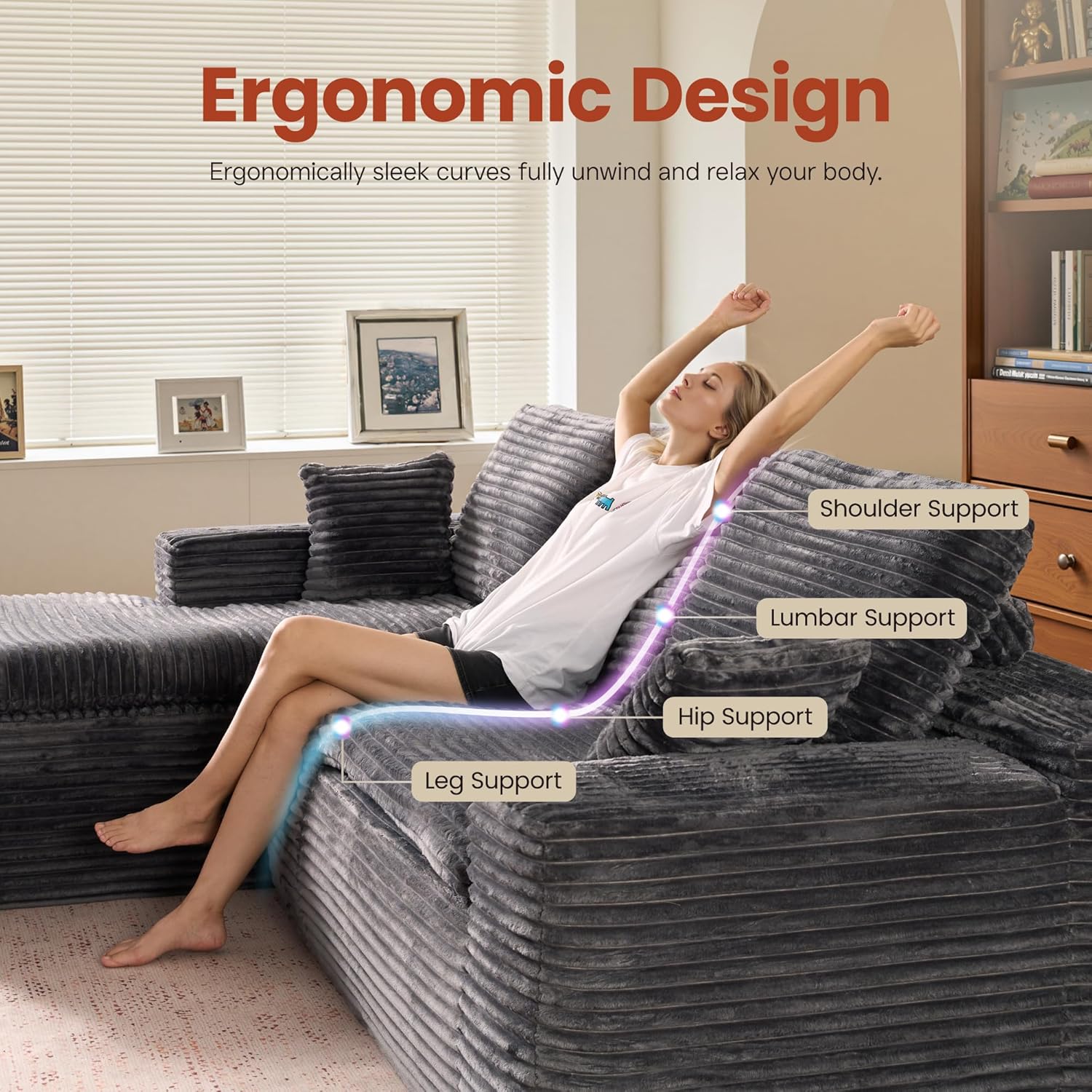 ovios 105” Modular Sectional Sofa with Thicken Seat Cushion, Cloud Couch with Deep Seat, Modern L-Shape Sofas Couches with Chaise,Upholstered Couches for Living Room Bedroom,Grey