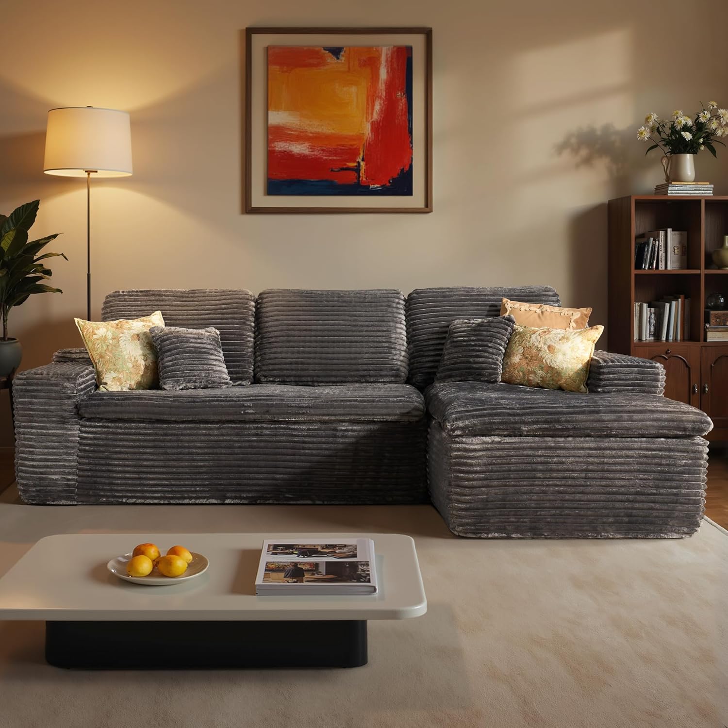 • Comfy Chaise Couch:Bask in unparalleled luxury with our interchangeable sofa collection, which embodies a spacious, cloud-like seating sensation. Revel in supreme ease with our couch with 70" lounge chaise, meticulously crafted from high resilience foam architecture and coil spring reinforcement