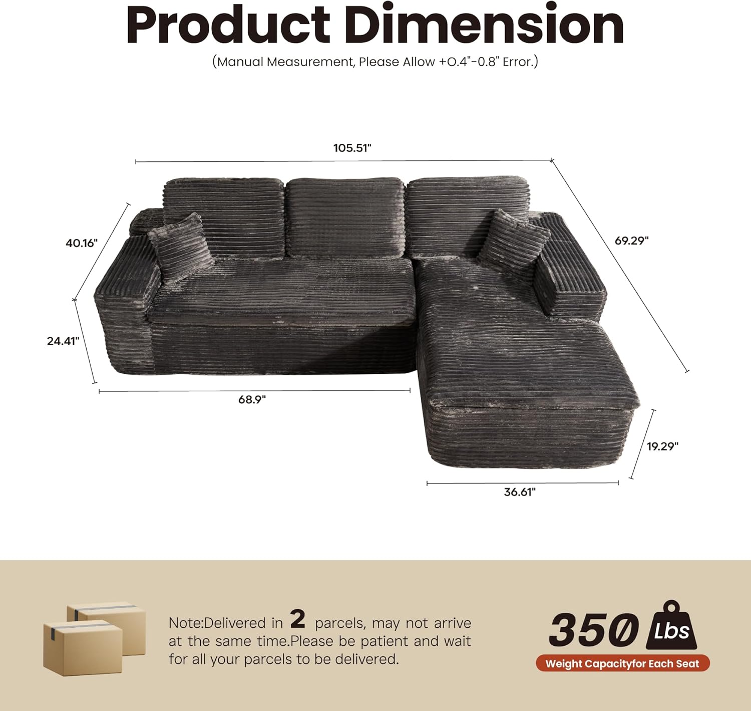 • No Assembly Required:Escape the typical furniture setup hassle with our modular cloud lounge. Simply unbox all parts and lightly tap each segment to boost its springiness and poof, bringing it back to its photogenic glory. Complete revival may take up to around 72 hours. Delight in the ease of a no-assembly nirvana!