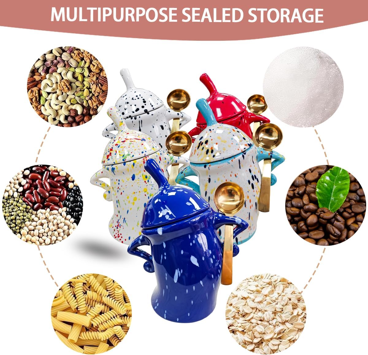 Ceramic Kitchen Canister with Silicone Seal Lid,Modern Elegant Design Airtight Lid Storage Food Jar Canister for Kitchen Sugar Coffee Tea Spice or More (Red)