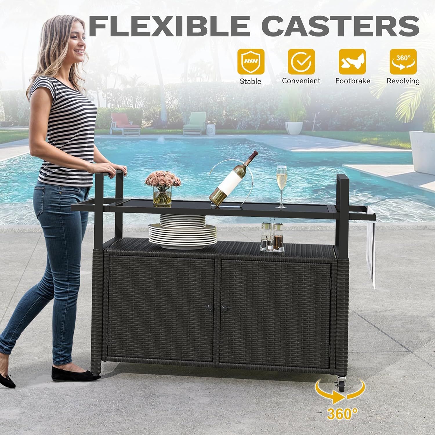 - Effortless mobility: Equipped with smooth 360-degree wheels, this portable outdoor cart effortlessly glides to any desired location, providing convenience and flexibility