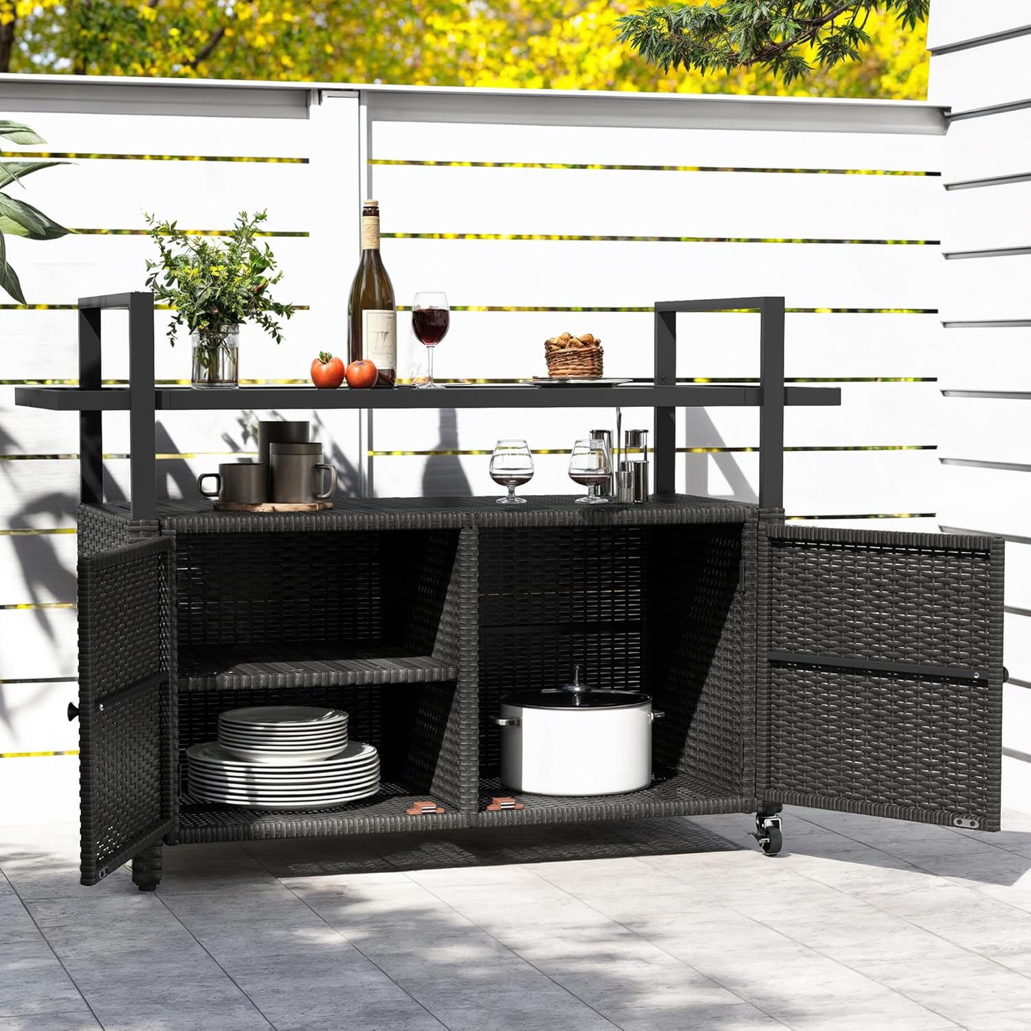 - Patented appearance: Our outdoor kitchen bar cart features an exclusive, patented design and offers spacious storage options; Enjoy a large 56-gallon open space, a 70-gallon cabinet