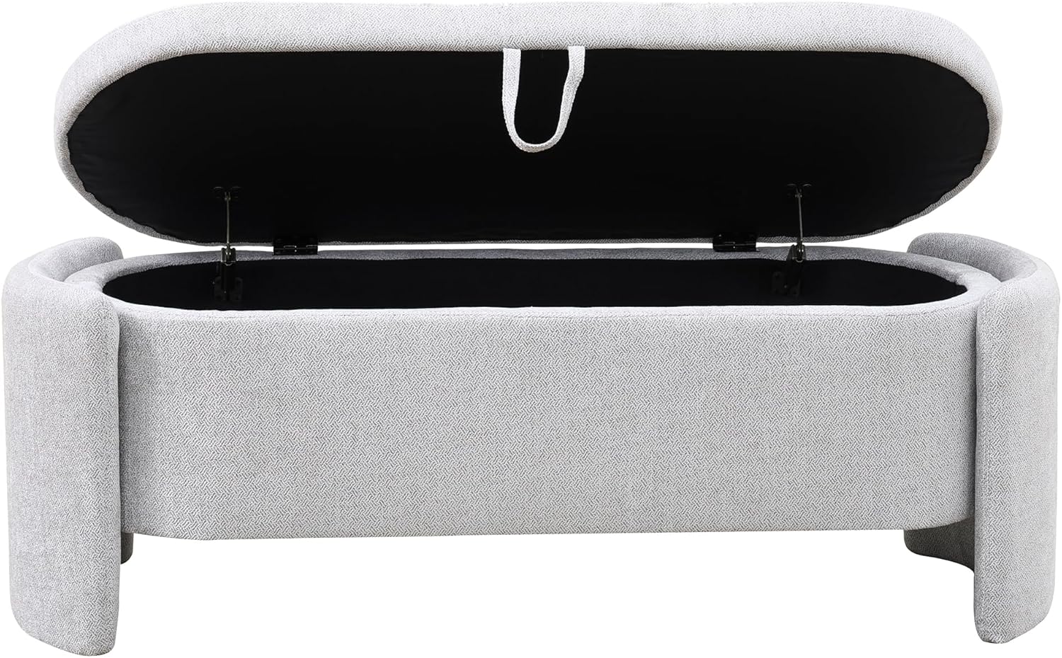 - AMPLE STORAGE: This ottoman offers generous storage capacity for items like pillows, blankets, shoes, seasonal decor, books, toys, and more. Designed with convenient hinges, the lid stays open smoothly and closes gently with a soft-close mechanism. Ideal for organizing your living space.