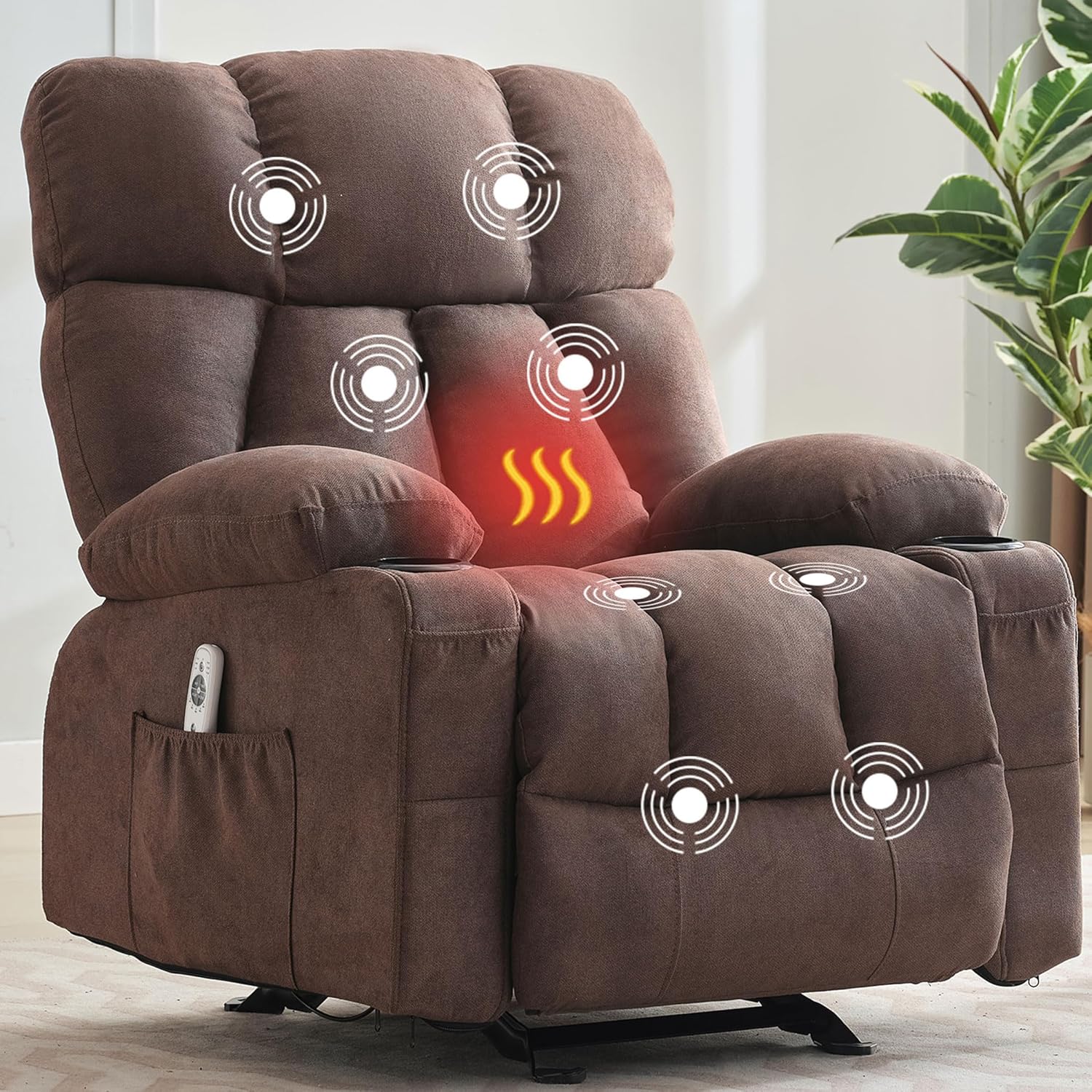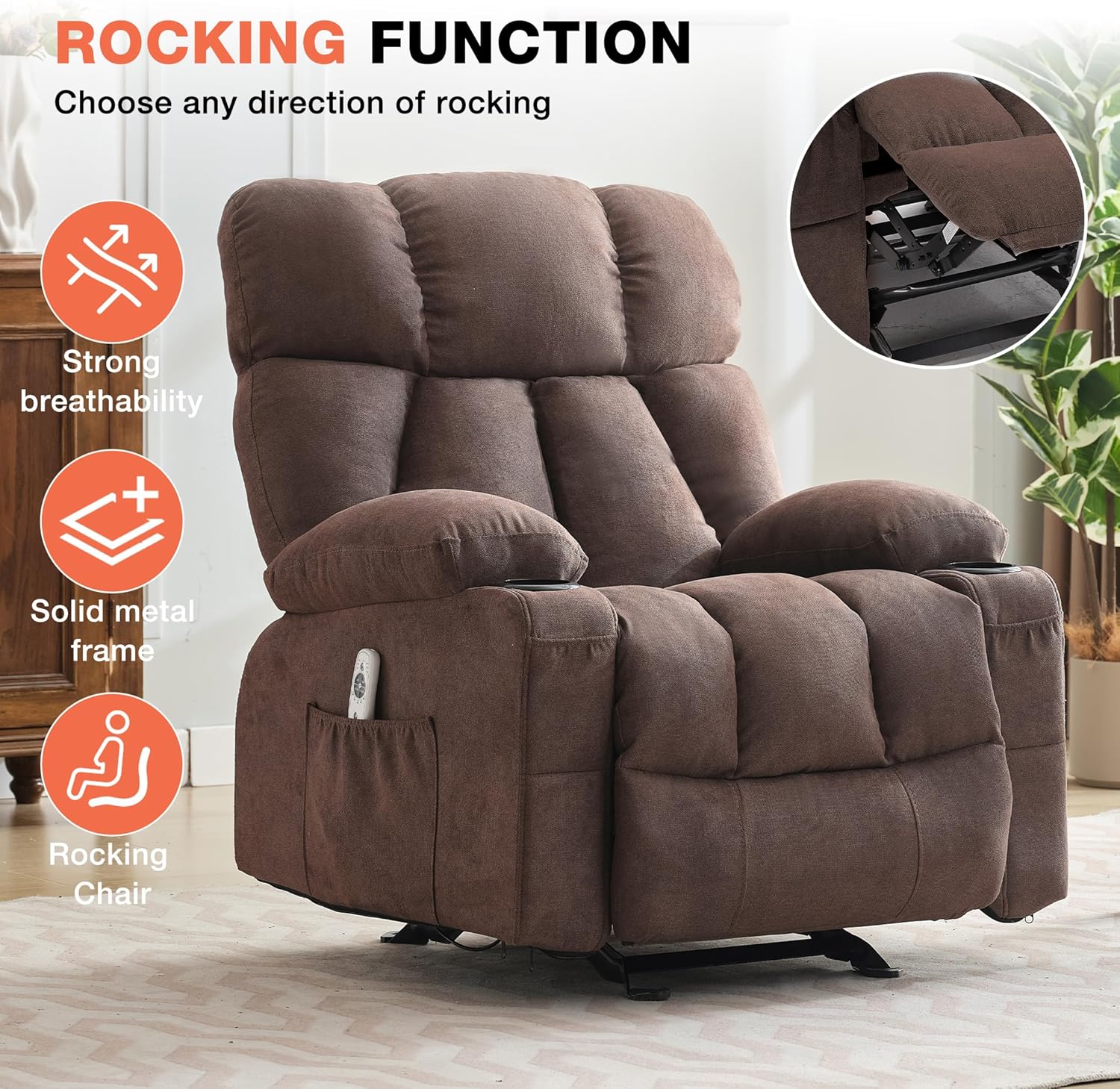 - 【Massage and Heat for Ultimate Comfort】 The MAHOMICO Massage Rocker Recliner combines massage and heat functions to provide soothing relief for your back. Enjoy the targeted heat and massage features that help relax your muscles and improve circulation after a long day of sitting.