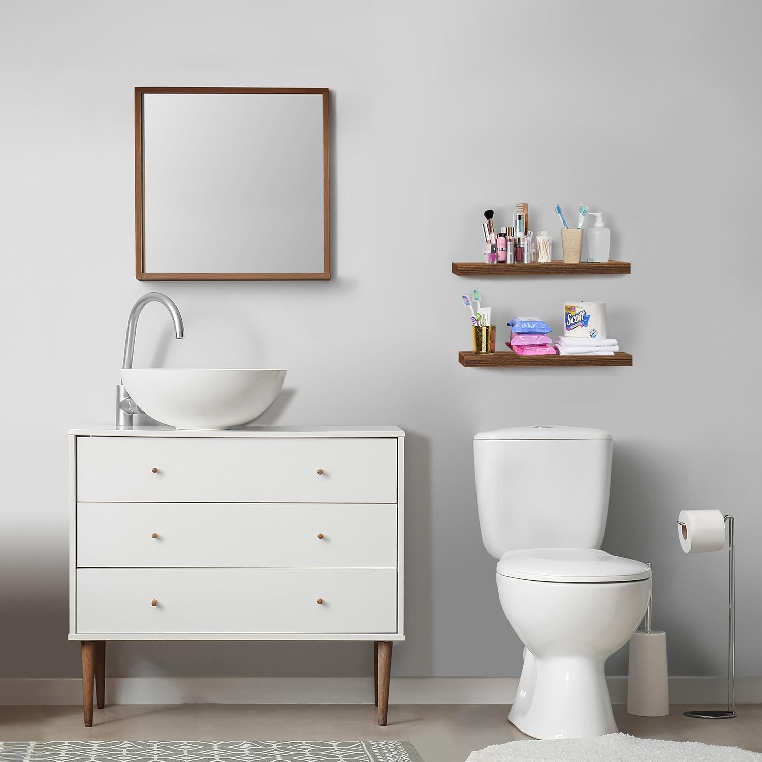 Sorbus Floating Shelves for Wall, Bathroom Shelves Wall Mounted for Kitchen, Bedroom, Bathroom Storage Over Toilet, Hanging Book Shelf for Home Decor Living Room (Walnut, 2 Pack)