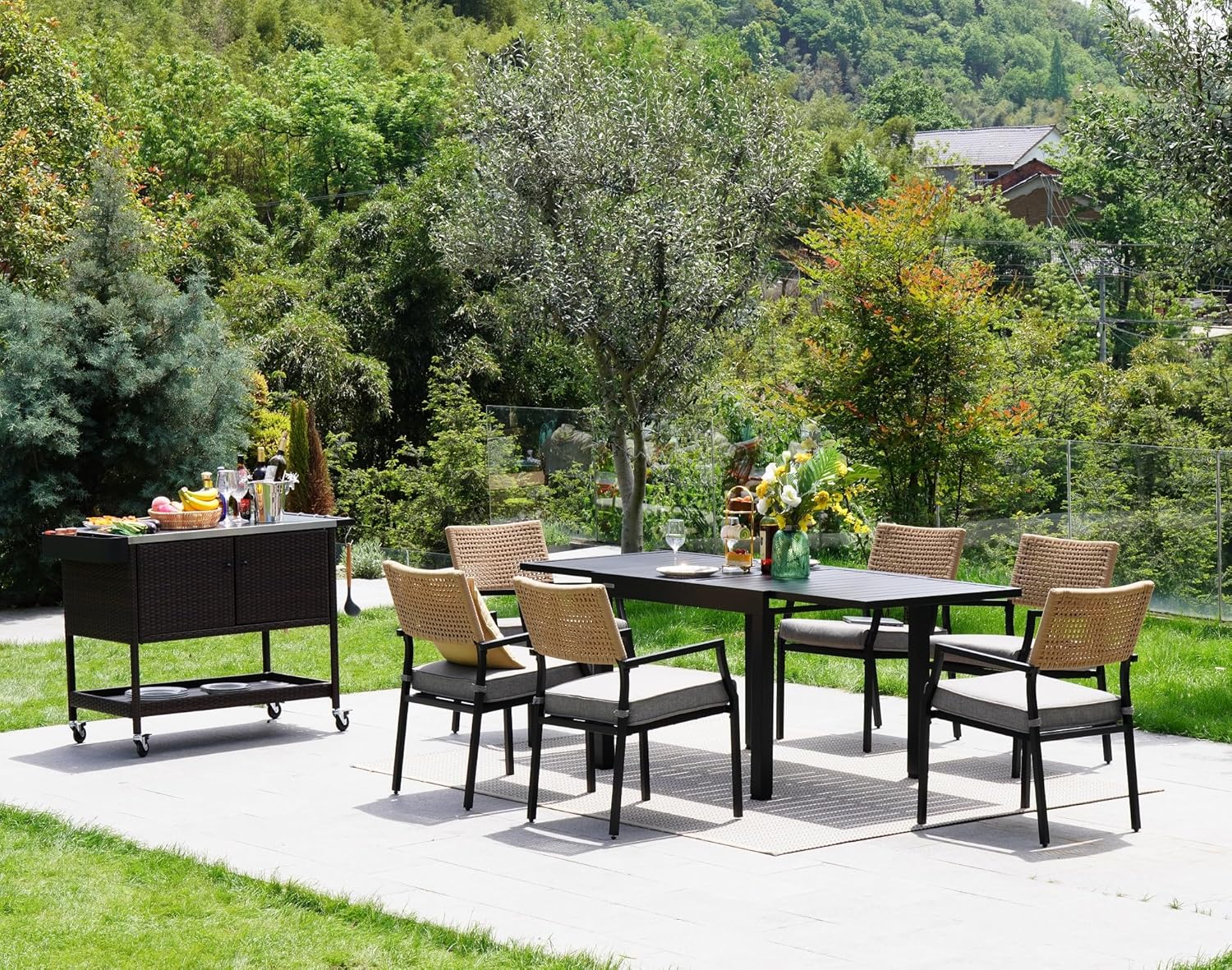 - Sturdy Material: The outdoor bar cart is made with powder-coated steel frame and weather-resistant wicker for years of use. Solid stainless steel table top for displaying appetizers and beverage