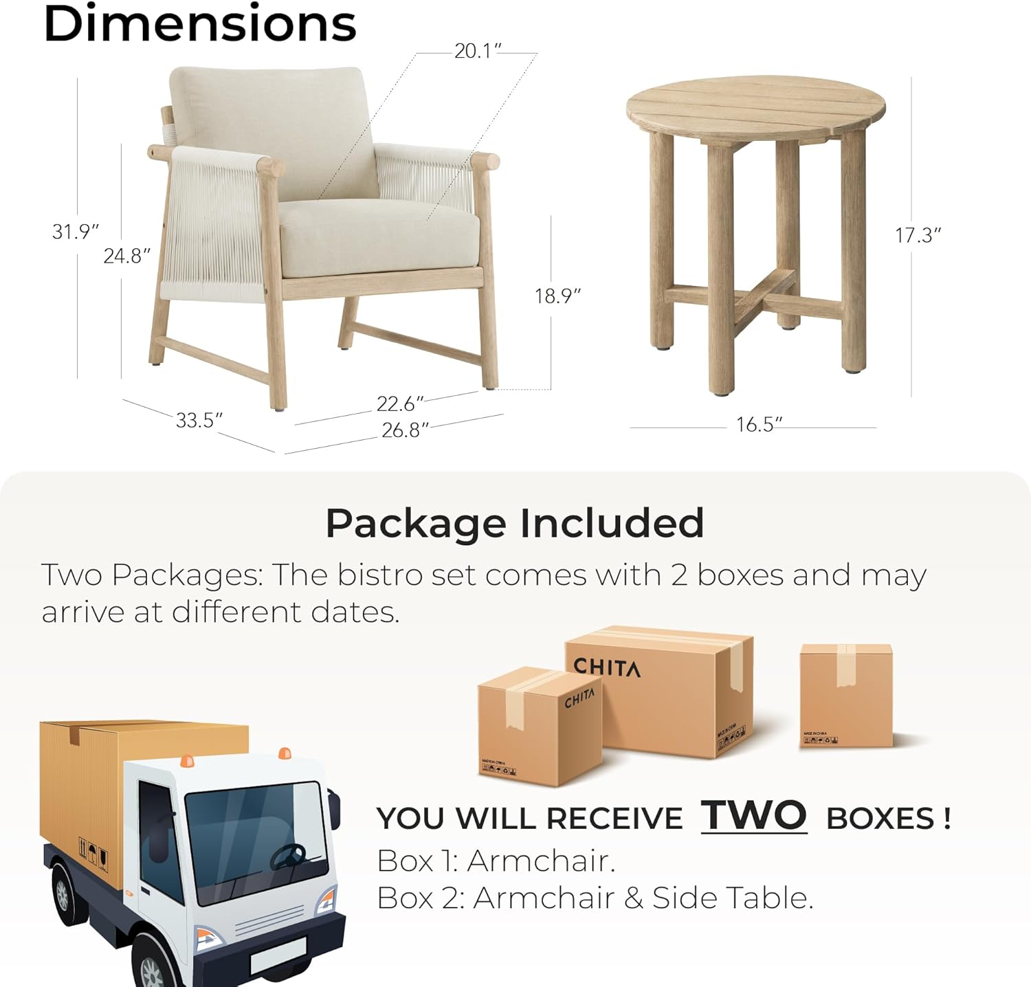 - Assembly & Delivery Notes: This patio chair requires assembly (2 people recommended).Ensure a minimum door width of 18 inches for delivery. Perfect for small spaces like apartments or larger areas like decks and gardens, this set combines functionality with modern boho braid design.