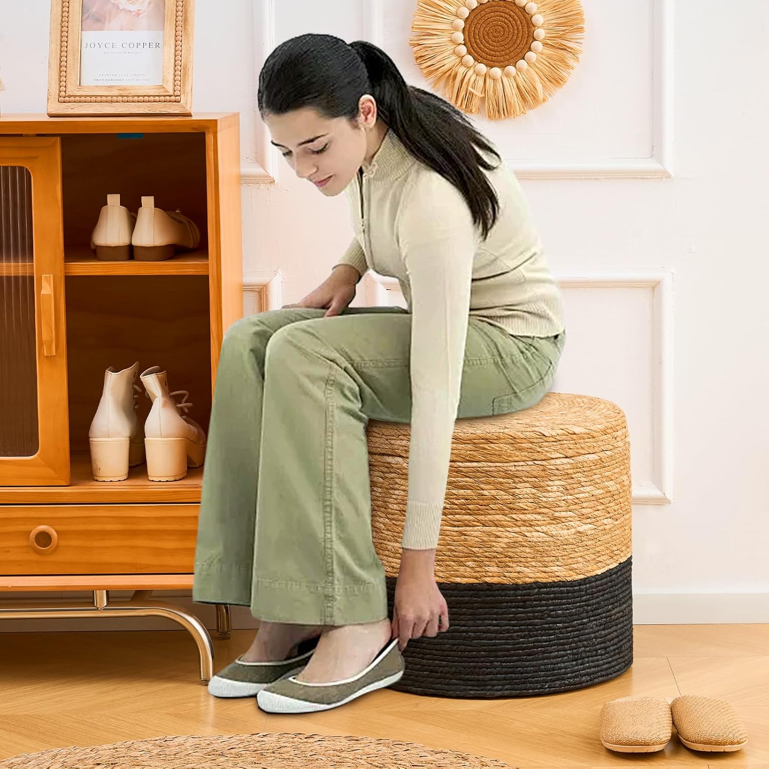 - 100% Handmade Shell of Pouf Ottoman: Beautifully handwoven of thick, sustainable, and durable Natural Cattail. Its lightweight to move yet sturdy and comfortable