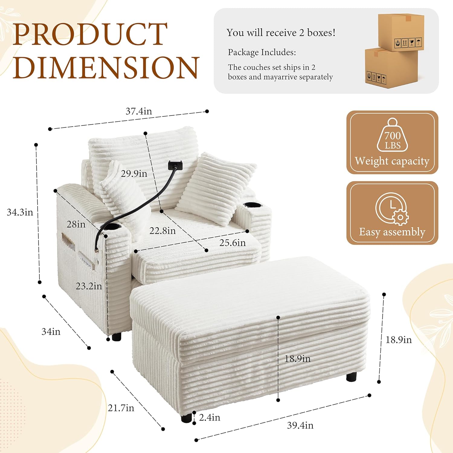 - Thoughtful Features for Convenience — Phone Holder and USB Port: Stay connected and hands-free with a built-in phone holder and one USB port, letting you charge your devices effortlessly while you relax. This accent chair truly supports your modern lifestyle needs without interrupting your leisure time.