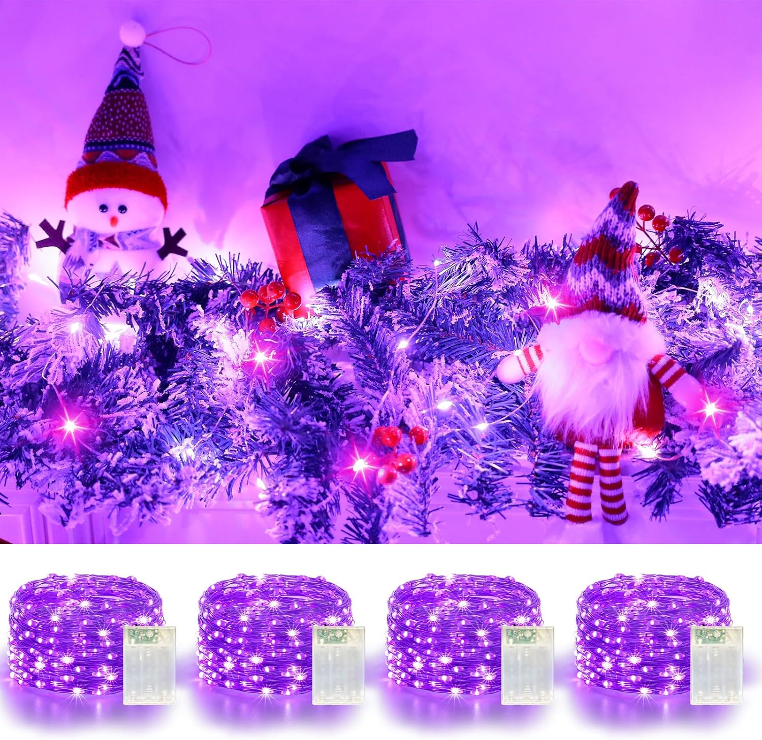 4 Pack 60LED Halloween Fairy Lights Battery Operated - 20FT Twinkle Lights with 2 Lighting Modes Indoor Outdoor, Waterproof Led Fairy String Lights for Christmas, Bedroom, Dorm, DIY Decor, Purple