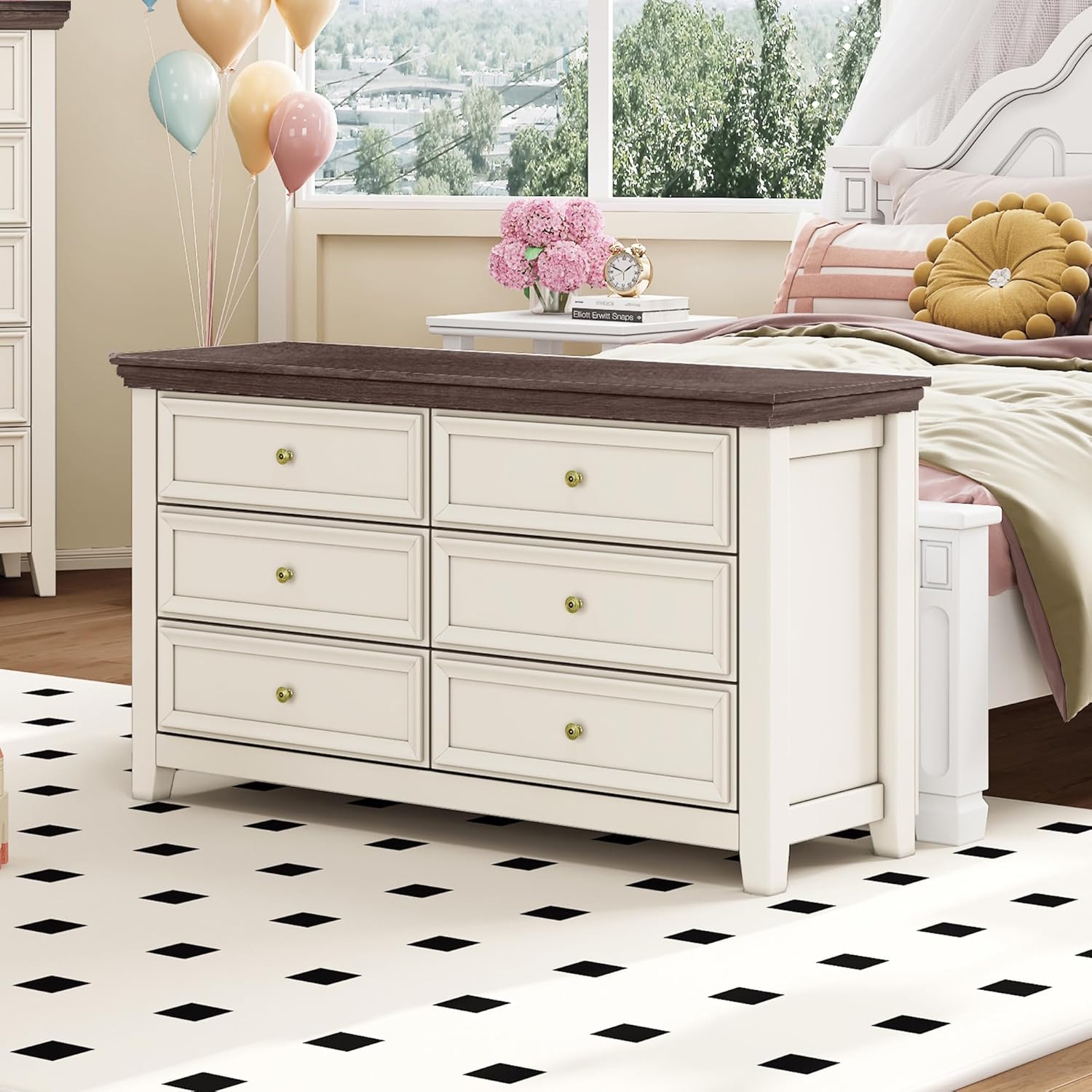 - 【Durable Constructions】The white 6 chest of drawers is made from non-toxic laminated composite woods with a sturdy back panel, solid metal knobs, and drawers that run on smooth roller glides with built-in safety stops. The bottom cross support structure and wooden frame make this 6 drawer dresser more stable and durable than others which will not deform after several years.