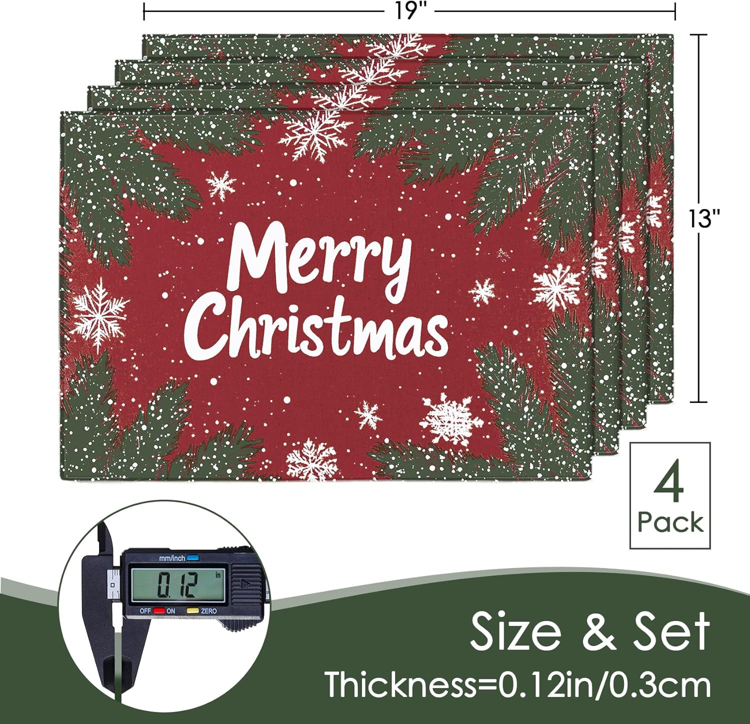 - Perfect Size & Versatility: You will get Christmas placemats set of 4, 13x19 inch, large size table placecmats enough for dinner plates and utensils, ideal for indoor or outdoor dining, from casual meals to festive gatherings