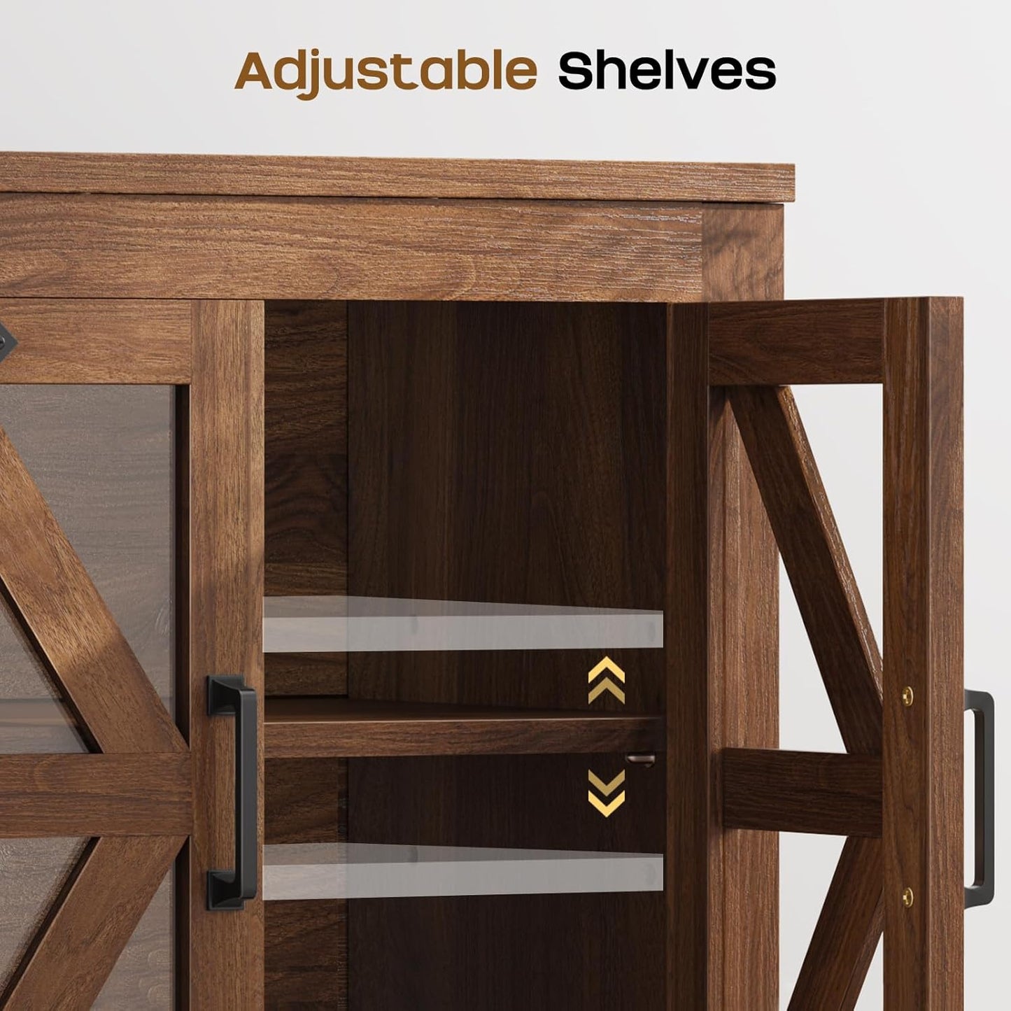 Farmhouse Side Table with Storage Cabinet, End Table with Adjustable Shelf, Night Stand, Wood Nightstand with Charger Station, 24 End Tables Living Room, Rustic Bed Side Tables Bedroom, Walnut