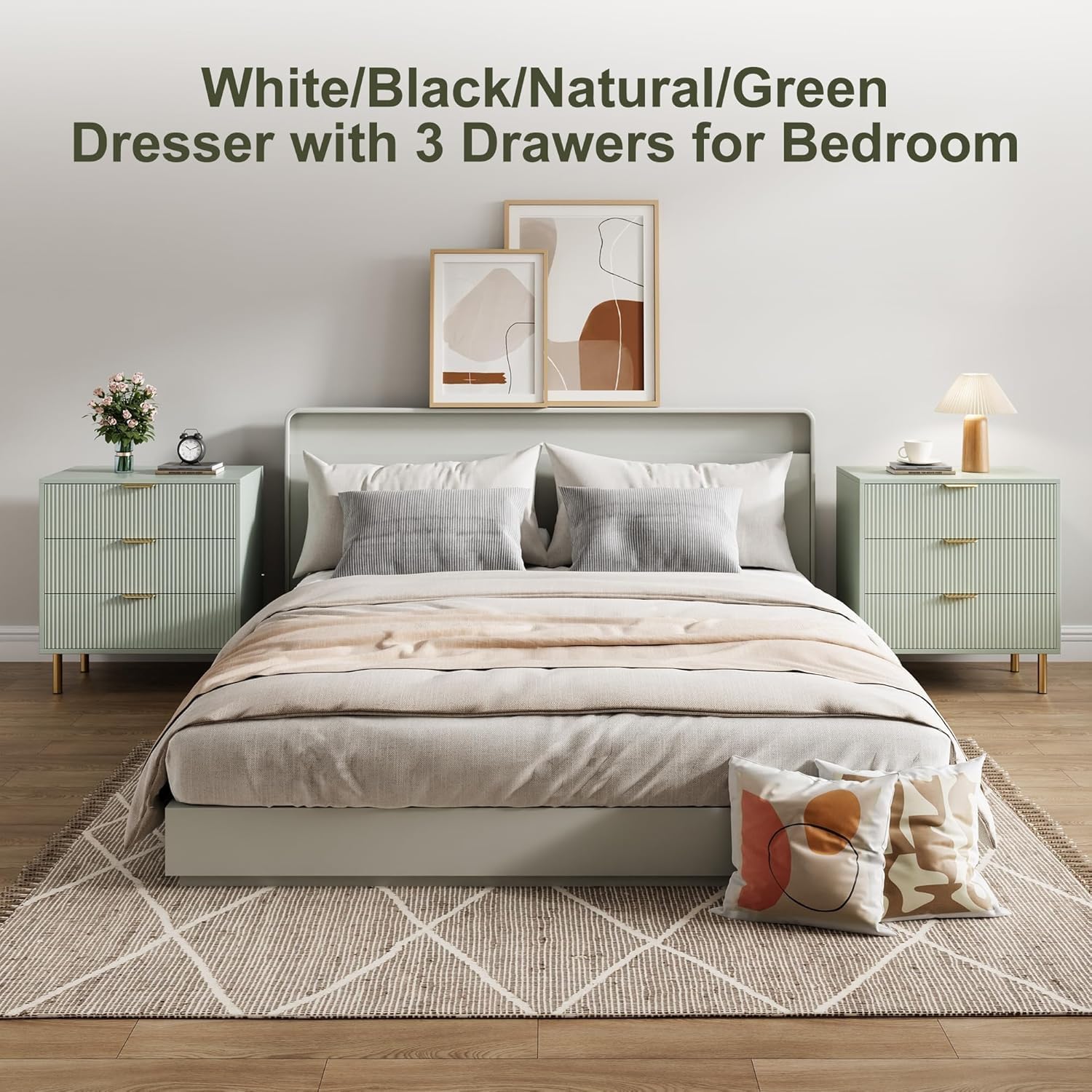 GAOMON 3 Drawer Dresser, Wood Chest of Drawers Organizer Storage with Gold Handle, Small Storage Cabinet, Modern Design Dresser for Bedroom, Living Room, Closet, Hallway, Entryway, Green