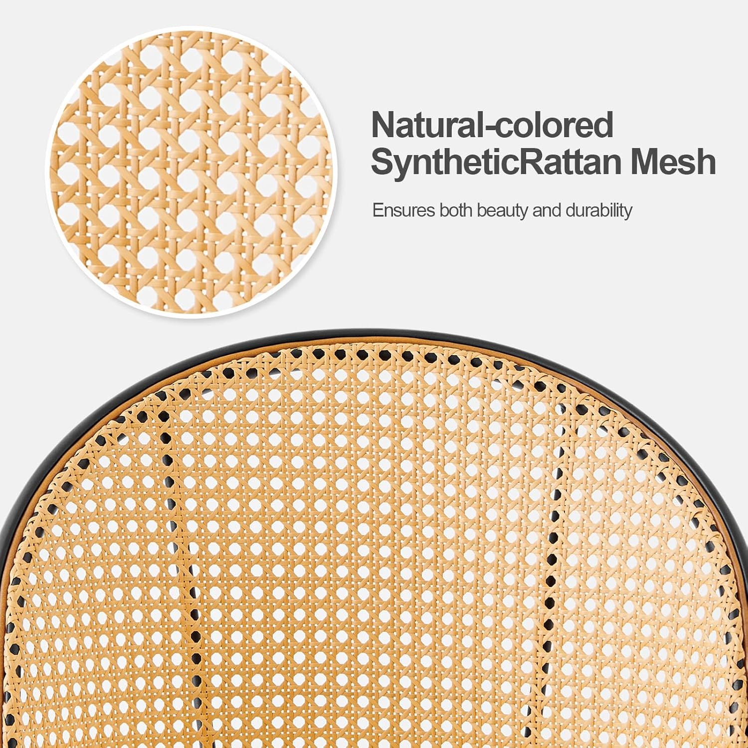 - 【Modern Mid-Century Style】: These dining chairs boast the sleek and timeless design of mid-century aesthetics. Powered-coated black metal legs provide a touch of contemporary elegance, while the exquisitely crafted rattan hollow back provides a delicate accent of natural beauty. This design evokes classic charm and creates an idyllic atmosphere