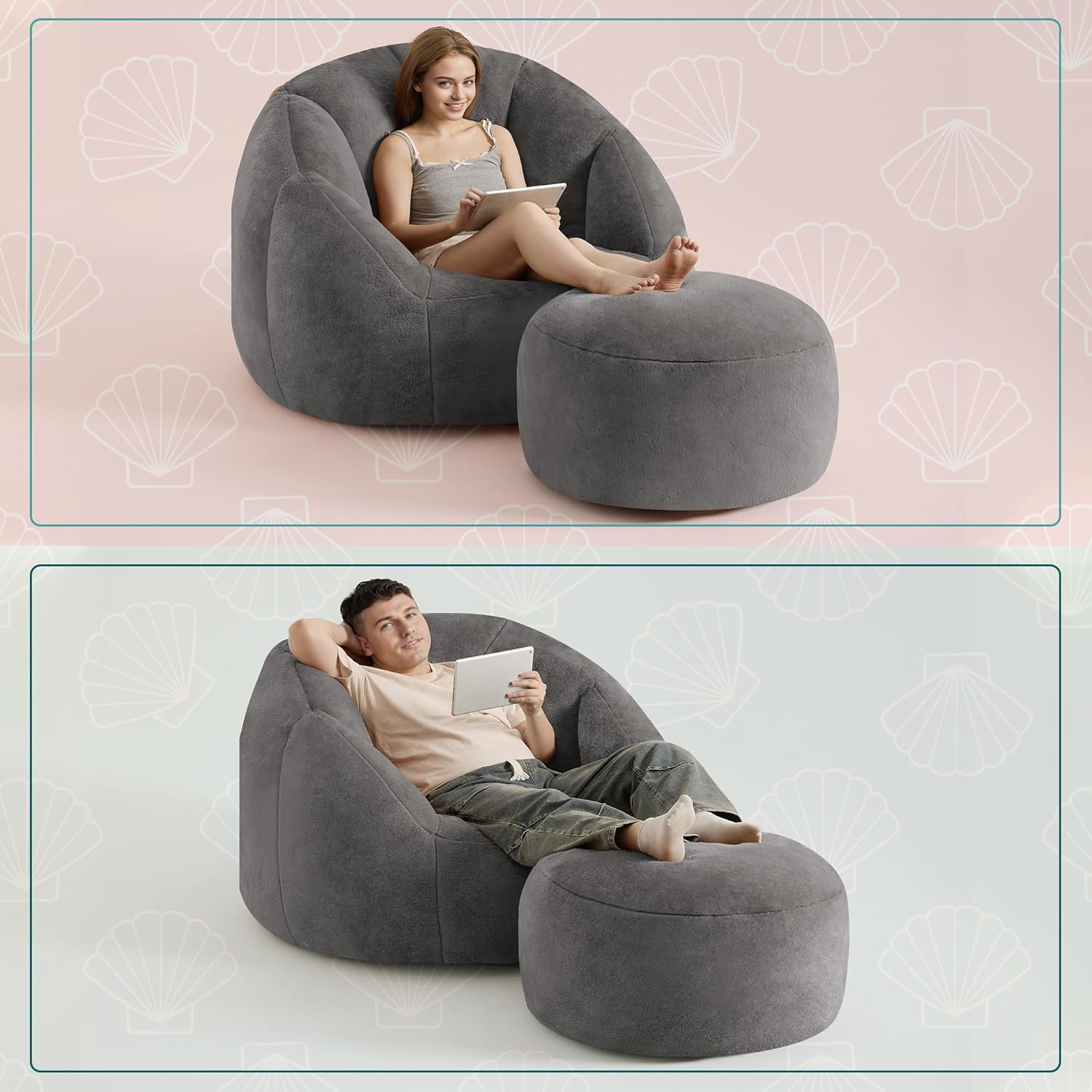 Giant Bean Bag Swivel Chair for Adults - Comfy Plush Round Shell Soft Accent Chaise Lounge Indoor Reading Chair, Oversized Cozy Floor Sofa for Living Room, Bedroom & Game Rooms, Dorm, Gray