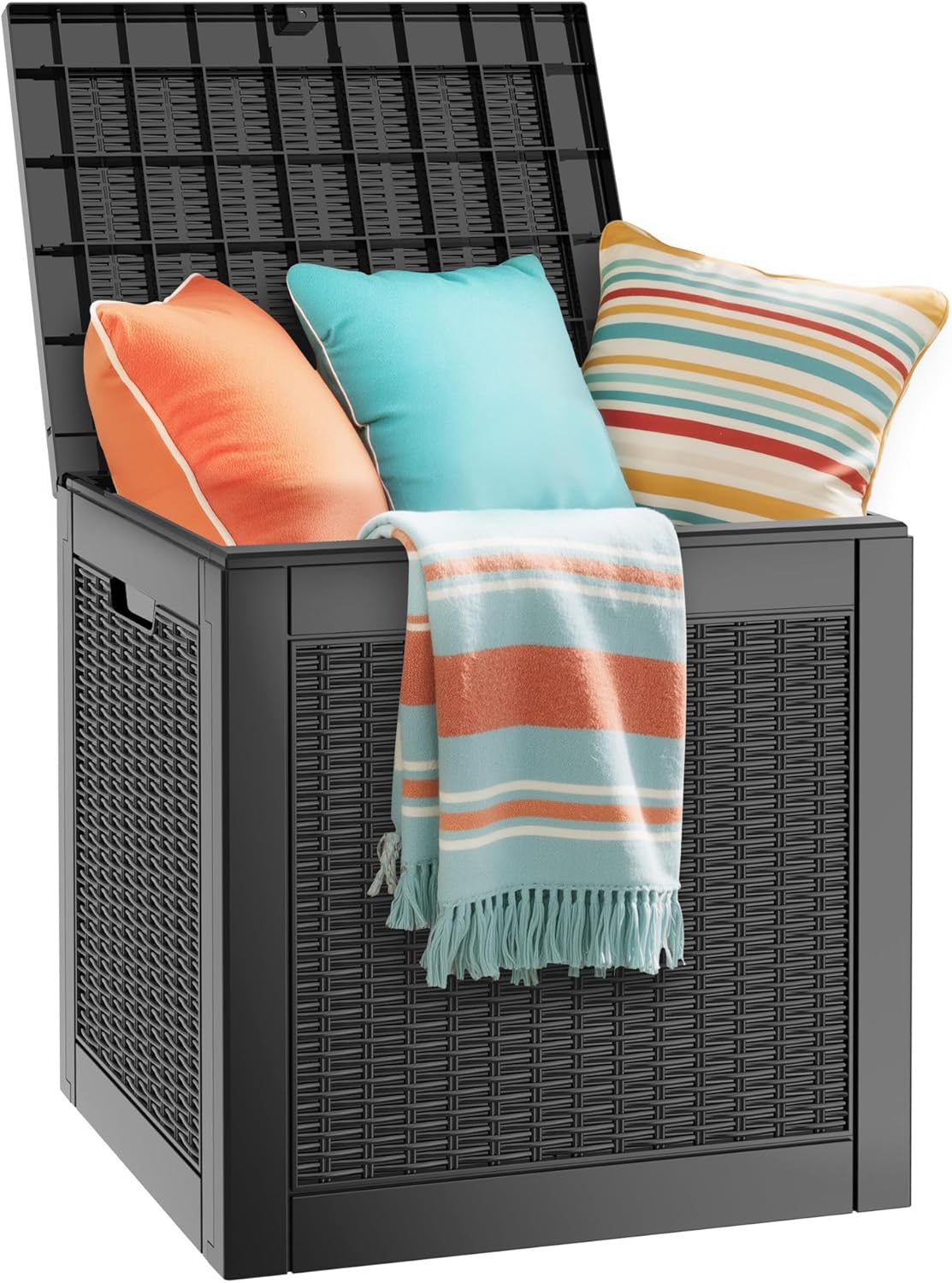 - Stylish design: Featuring a modern pattern design, this all-weather resin deck box adds a touch of elegance to your patio, garden, porch, or poolside. It serves as both a practical storage solution and a beautiful decorative piece.