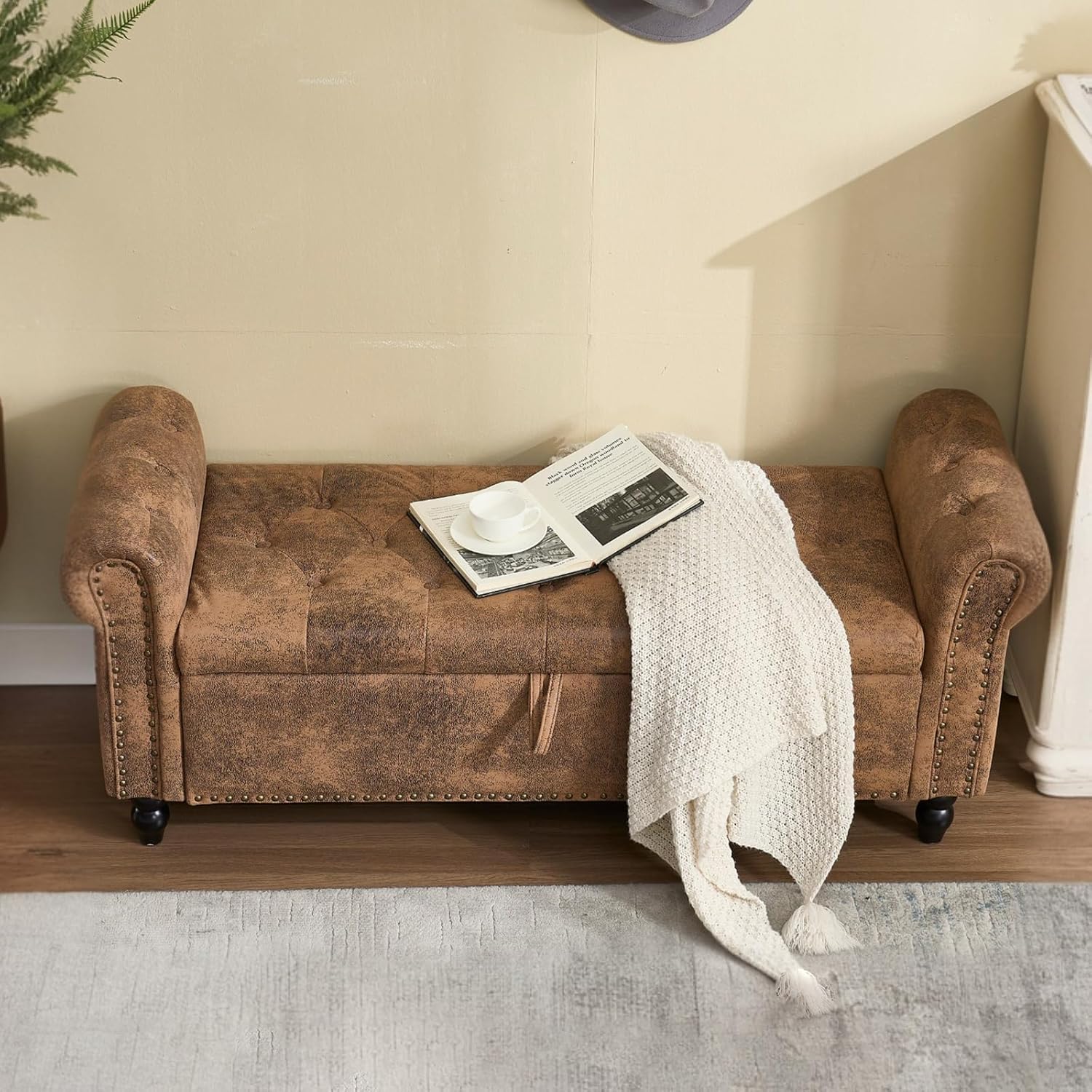 - ·Modern Design: Our storage ottoman showcases deep button tufting and elegantly rolled arms, capturing the essence of a truly modern piece. With a sophisticated structure, this bedroom storage bench embodies a minimalist style that prioritizes comfort and practicality.Diamond Stitch Button Tufting: The button-tufted stitching on the lid enhances the modern designthis of this end of bed bench. The diamond stitch pattern introduces subtle texture while maintaining optimal comfort.