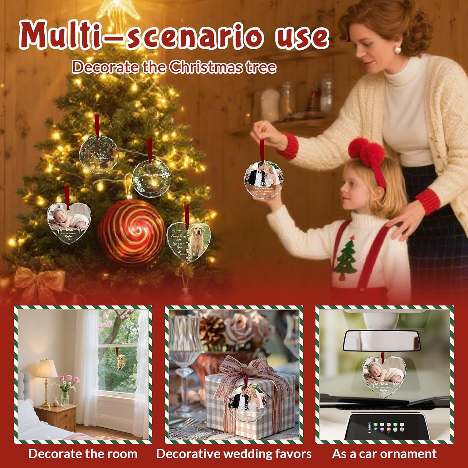 - Custom Christmas ornament: This custom Christmas ornament glass supports personalised customisation. Whether it's cherished family photos, sweet couple photos, adorable baby and pet photos, or meaningful text messages (such as names, dates, or blessings), they can all be precisely displayed on the crystal. Each personalized Christmas ornaments is a one-of-a-kind, exclusive piece, preserving precious moments in a crystal-clear, timeless manner