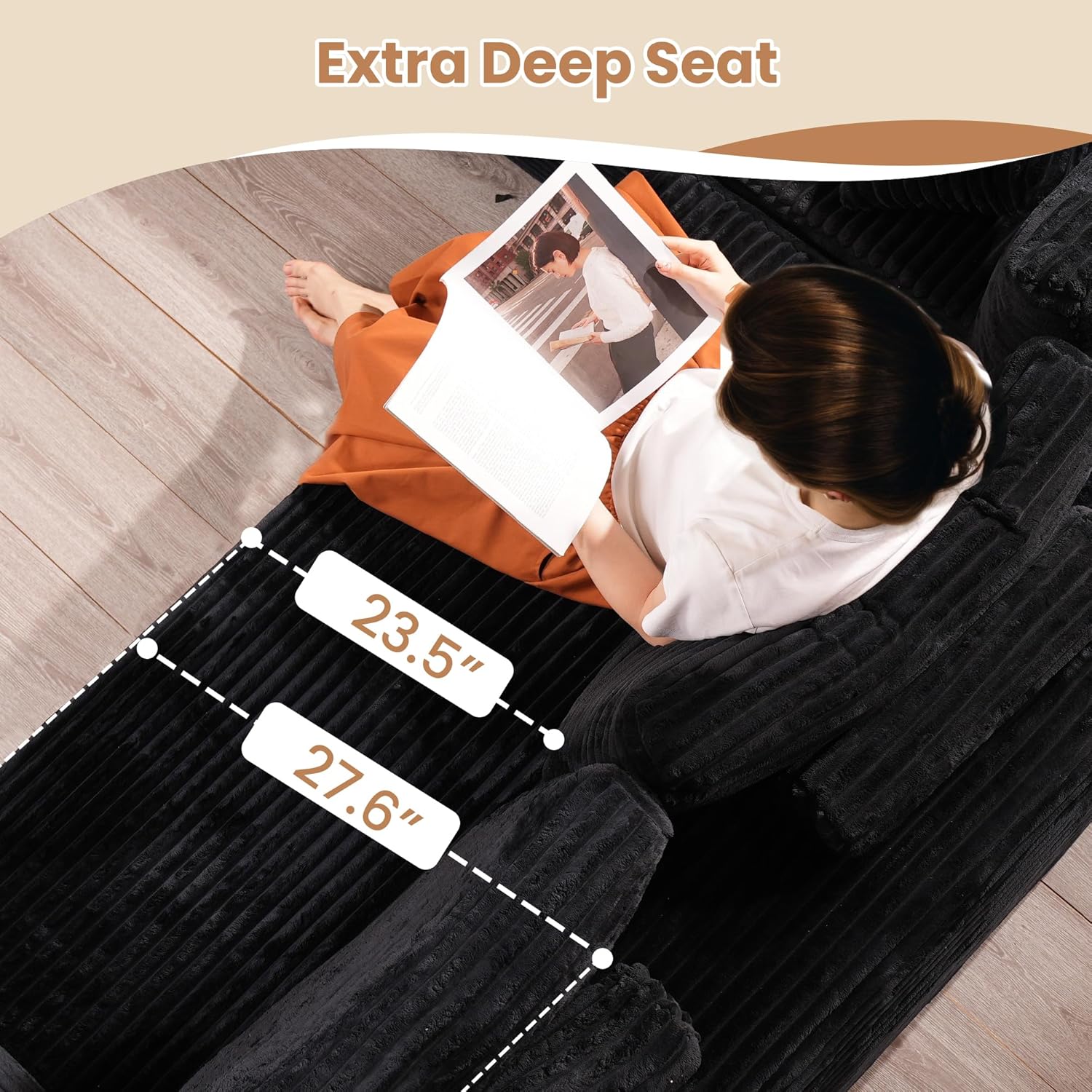HOOOWOOO Cloud Sectional Couches for Living Room,Modular Sectional Sofa No Assembly,Plush Corduroy Large Floor Couch Furniture Set with Deep Seat Right Chaise L Shape(Black)