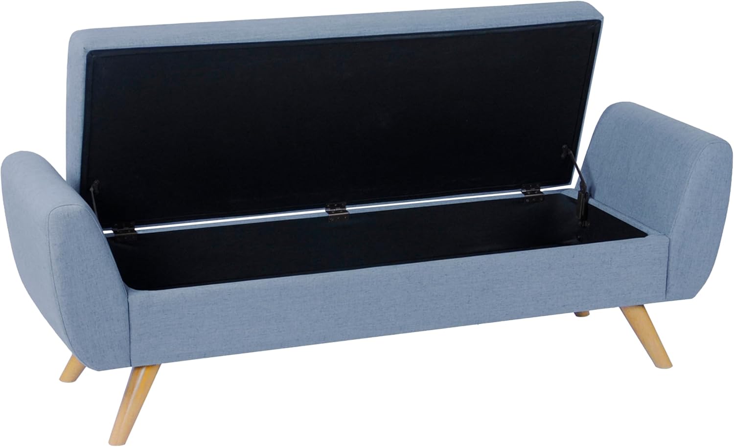 HomePop Modern Storage Bench with Wood Legs |Homepop Home Décor|Bench with Storage for Living Room & Bedroom - French Blue Woven