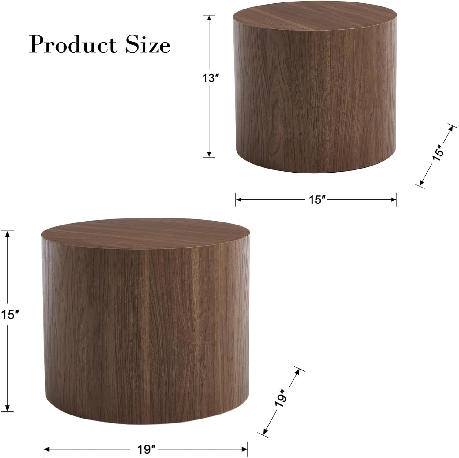 - Nesting Table Set of 2: The nesting table set includes two different-sized tables , one coffee table 19’’W x 19’’D x 15’’H and one side table 15’’W x 15’’D x 12.5’’H, which can be arranged in multiple ways. One large and one small, with a sense of space and hierarchy