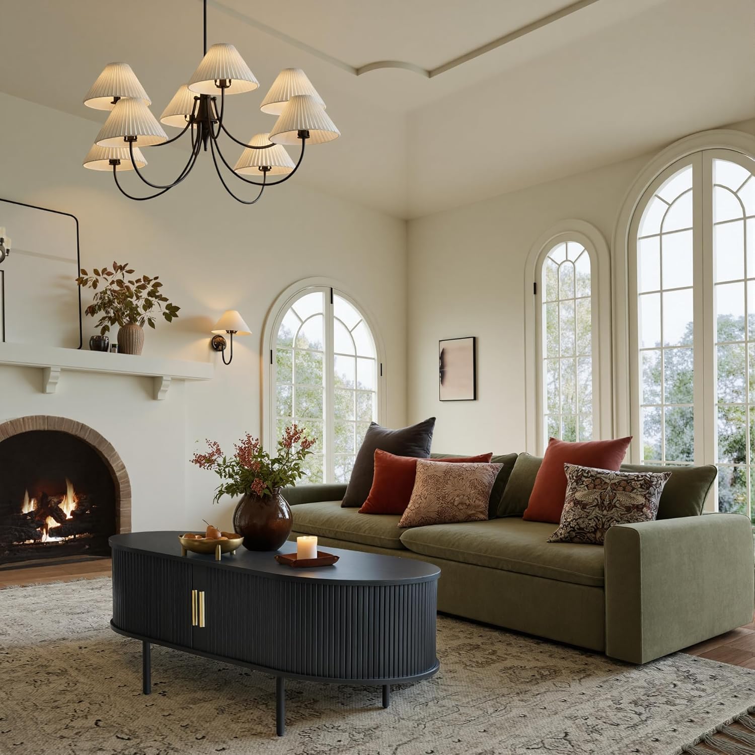 - [Easy-to-Clean Surface & Safer Curves] This fluted oval coffee table has a smooth, scratch-resistant wood surface that is easy to clean. Whether you're savoring a meal or doing crafts it cleans up effortlessly with a single wipe. The oval design reduces the risk of knocks and increases safety. As a modern minimalist coffee table, it has the everyday practicality that will add endless fun to your life