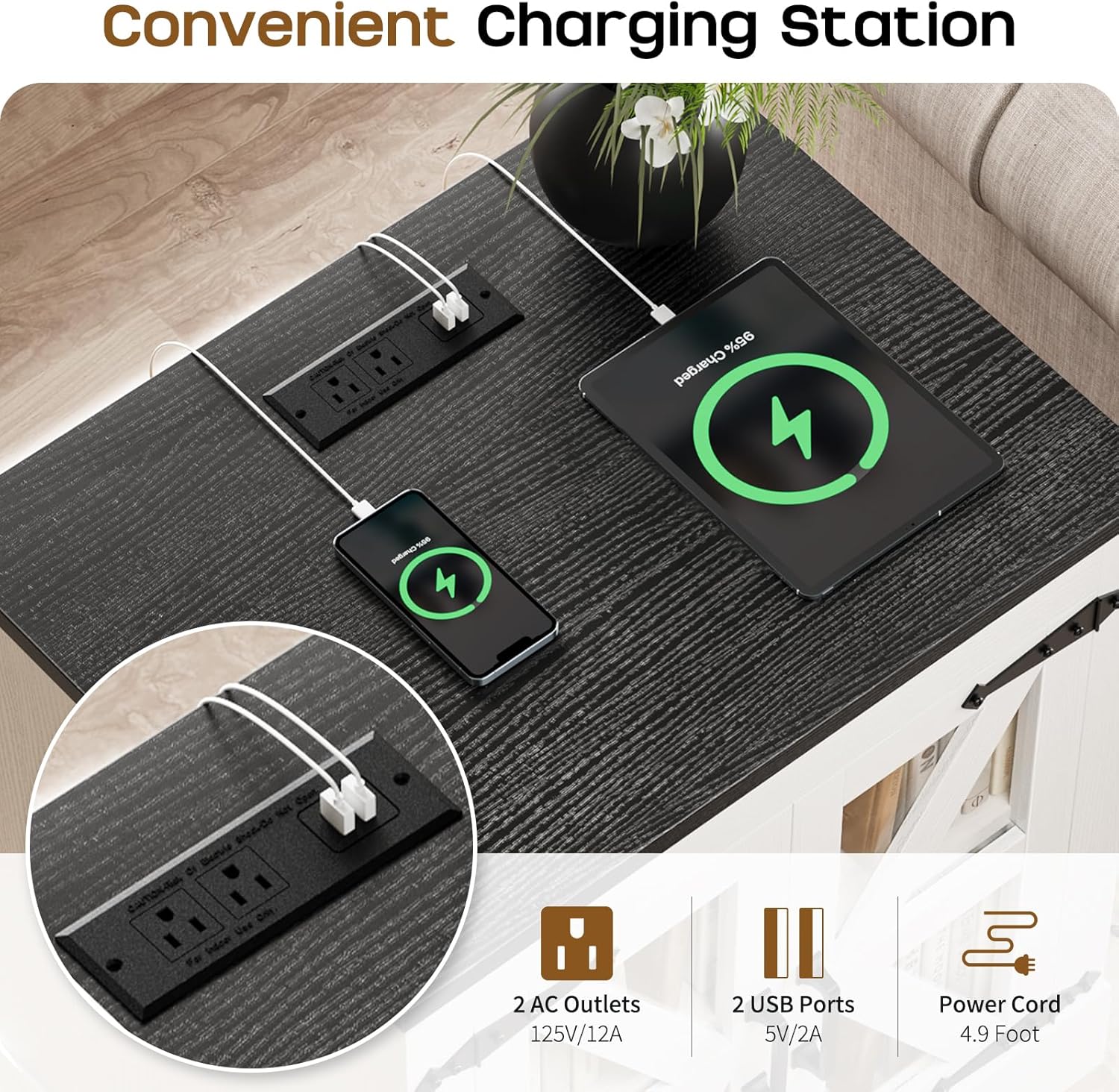 - 【Night Stand with Charger Station】Equipped with 2 AC outlets and 2 USB ports, this white night stand powers up to 4 devices at once, like your phone, laptop, tablet, and lamp—always charged, always ready. The 6.5ft power cord plugs into wall outlets easily, ensuring hassle-free charging.