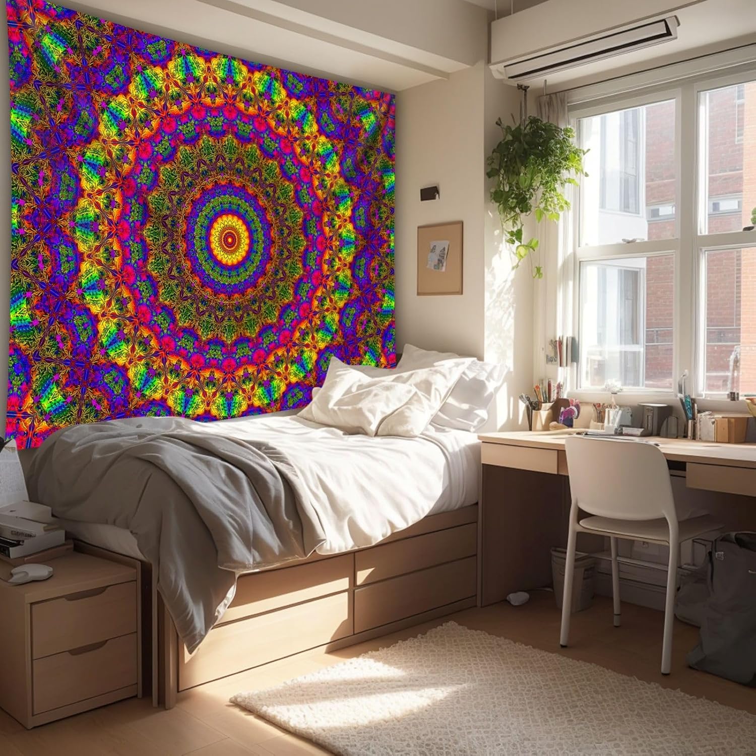 PSYHILAR Blacklight Mandala Boho Tapestry, Black Light Bohemian Hippie Poster for Adults and Teens, Aesthetic Colorful UV Reactive Wall Art Decor for Bedroom (80 x 60 Inches)