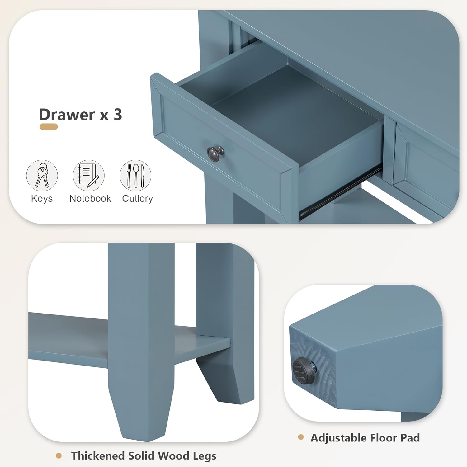 Farmhouse Modern Entryway Console Table 55.4'' Long Entry Sofa Table with Drawers & Storage Shelf for Living Room Hallway, Blue